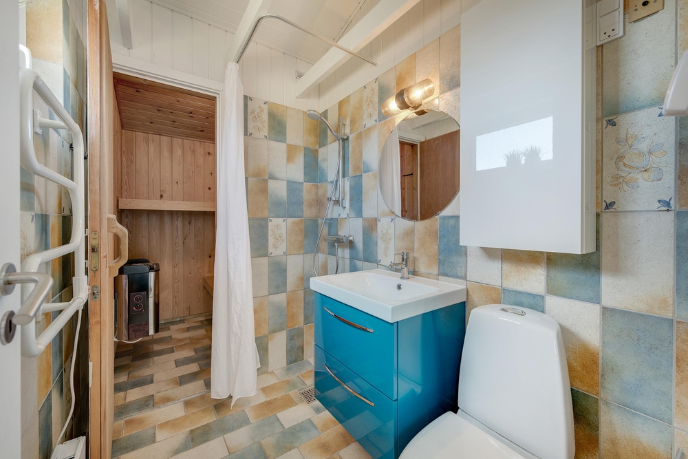 Im Badezimmer gibt es auch eine schöne Sauna in der du dich nach einem langen Spaziergang am Strand entspannen kannst.