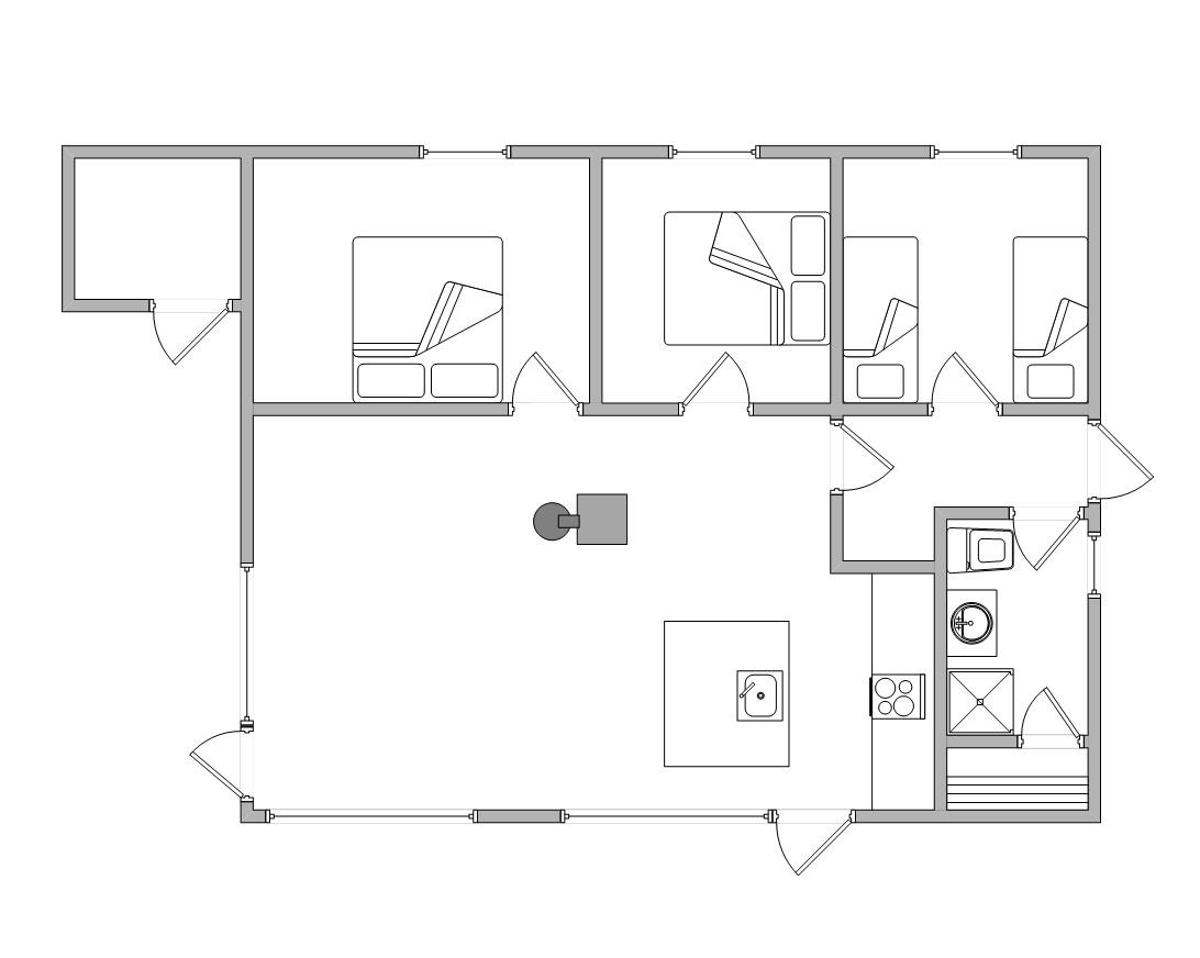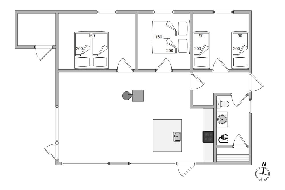 Im Sommerhaus hast du einen schönen offenen Raum mit Küche, Essabteilung und Wohnraum. Es ist hell und einladend eingerichtet, damit du dich hier wohlfühlen kannst und gemeinsam kochen, spielen oder Filme gucken kannst. Die 3 Schlafräume sind alle mit gute Matratzen ausgestattet.