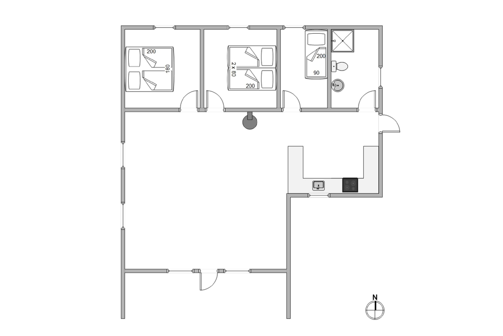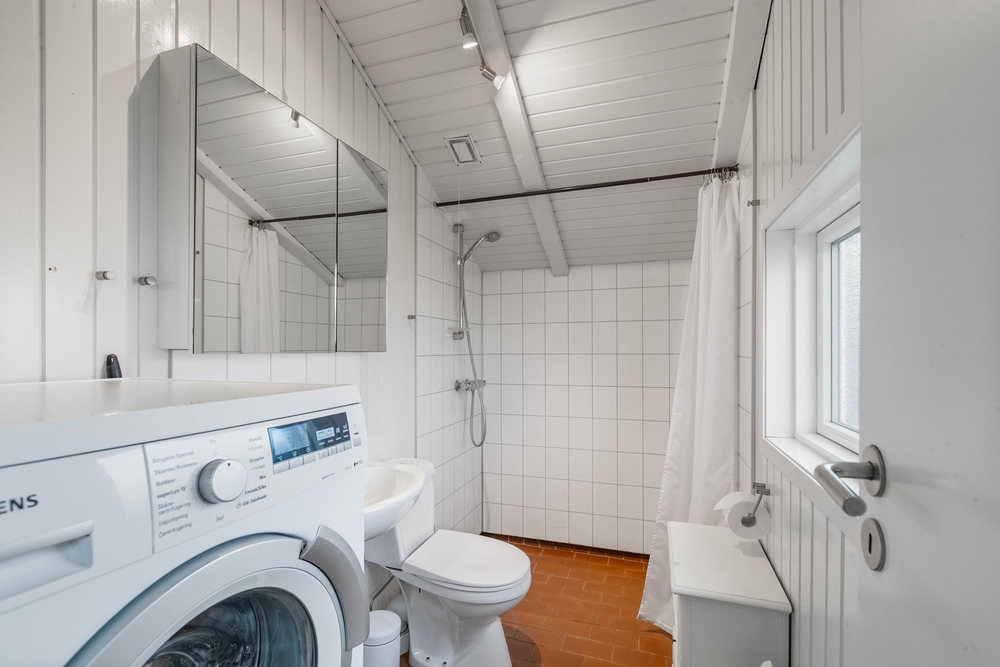 Im Feriengebiet Årgab liegt euer tolles Ferienhaus mit Platz für 4 Personen, verteilt auf 3 Schlafzimmer ? alle mit weißgestrichenen Wänden und Holzböden. -Zwei der Zimmer haben ein Doppelbett und das letzte Zimmer ein Einzelbett. Im Badezimmer mit Dusche ist auch eine Waschmaschine vorhanden.