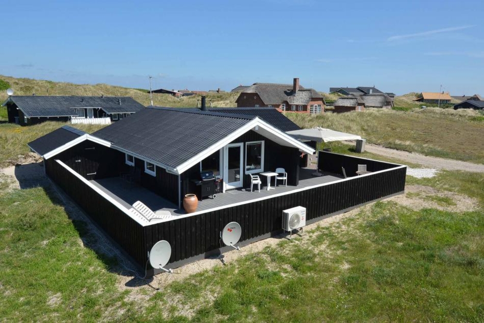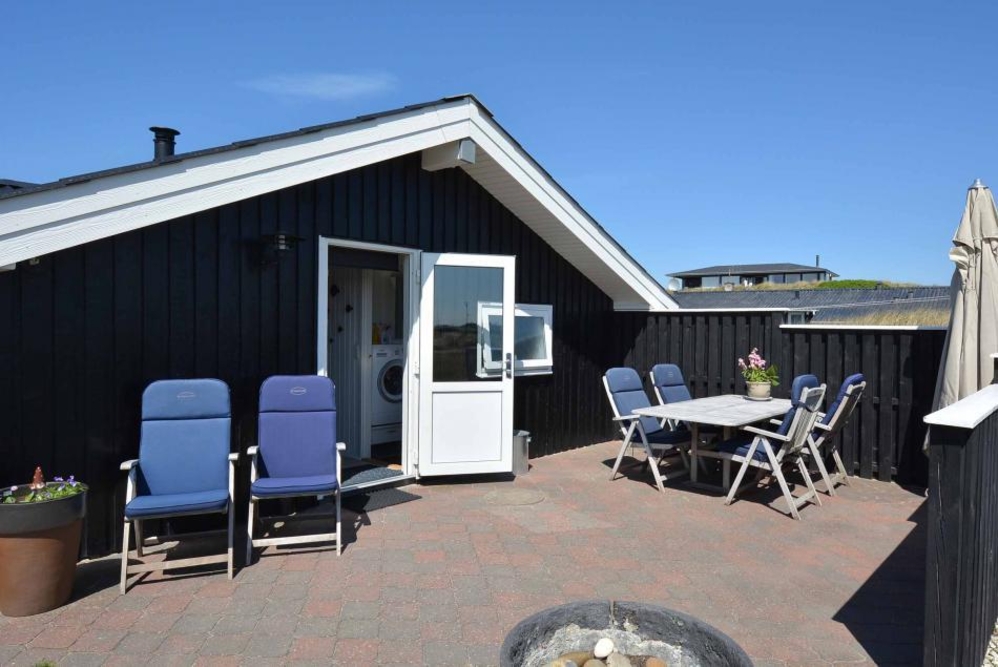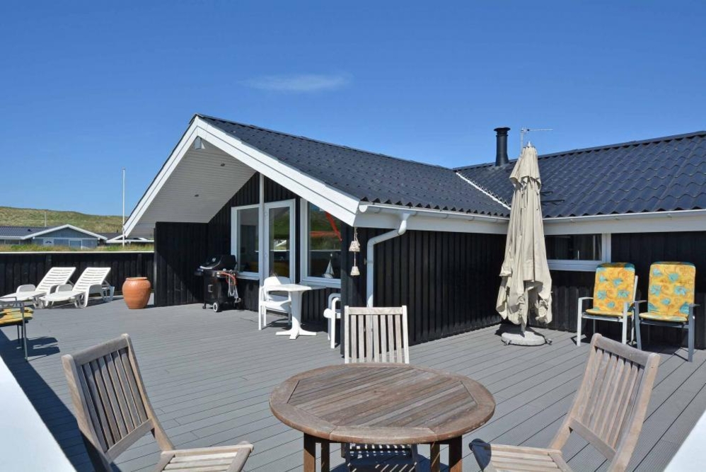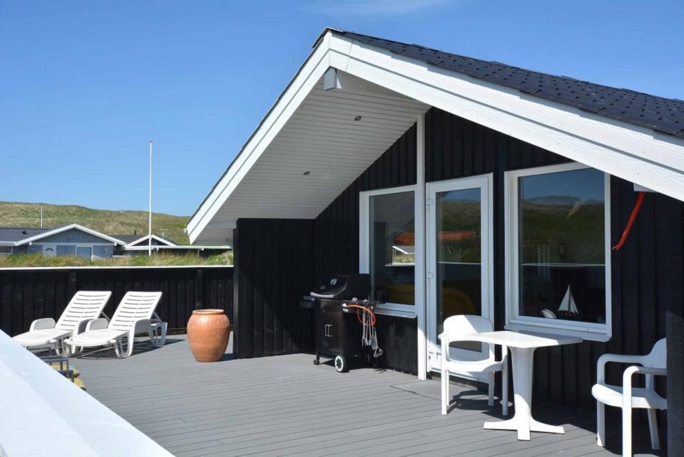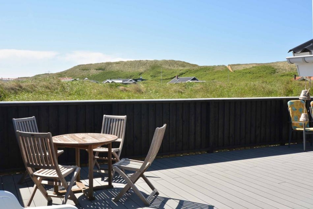 Die Abschirmung rund um die geschlossene Terrasse sorgt für Privatsphäre, gleichzeit ist die Aussicht auf die Dünenlandschaft in Richtung Westen ungestört. Ein gemütlicher Abend mit Barbecue-Dinner (Gasgrill) und dem Sonnenuntergang über den Dünen und der beruhigenden Meeresbrise im Hintergrund, muss doch Erholung sein.
