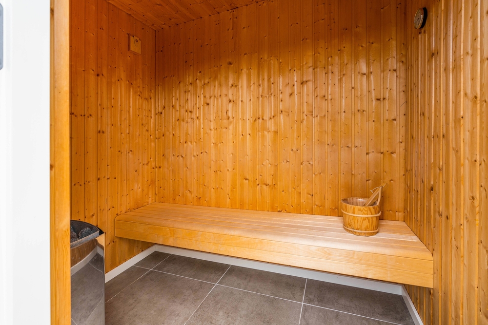 Die geschlossene Terrasse bietet ein paar extra coole Highlights; von hier aus habt ihr direkten Zugang zur eigenen Sauna und einem smarten Außenwhirlpool. Damit habt ihr die Chance, dem geschäftigen Alltag zu entfliehen und auf luxuriöse Weise, neue Energien zu tanken.