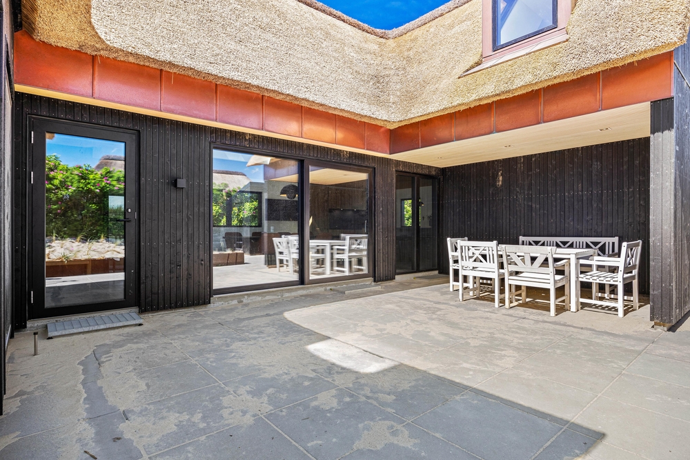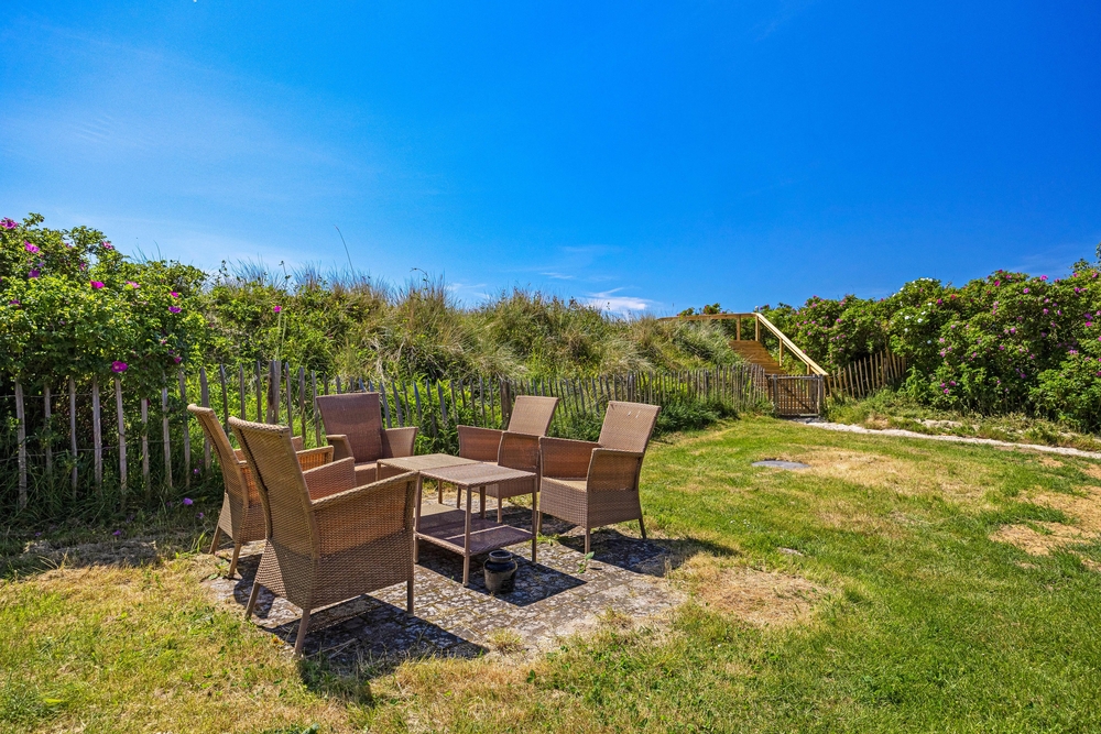 Auf der herrlichen Terrasse im Außenbereich stehen ausreichend Gartenmöbel und Liegestühle zur Verfügung, um die sonnigen Stunden in den Ferien in vollen Zügen zu genießen. Teilweise ist die Terrasse sogar überdacht, so dass ihr auch immer ein schattiges, trockenes Plätzchen findet. Das Grundstück ist übrigens komplett eingezäunt. Wenn die Temperaturen es zulassen, könnt ihr gegen Abend draußen den Tisch decken, und ein leckeres Menu vom Grill genießen.