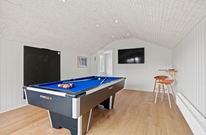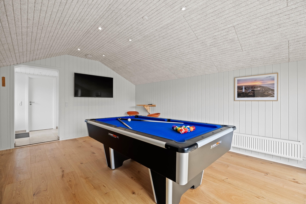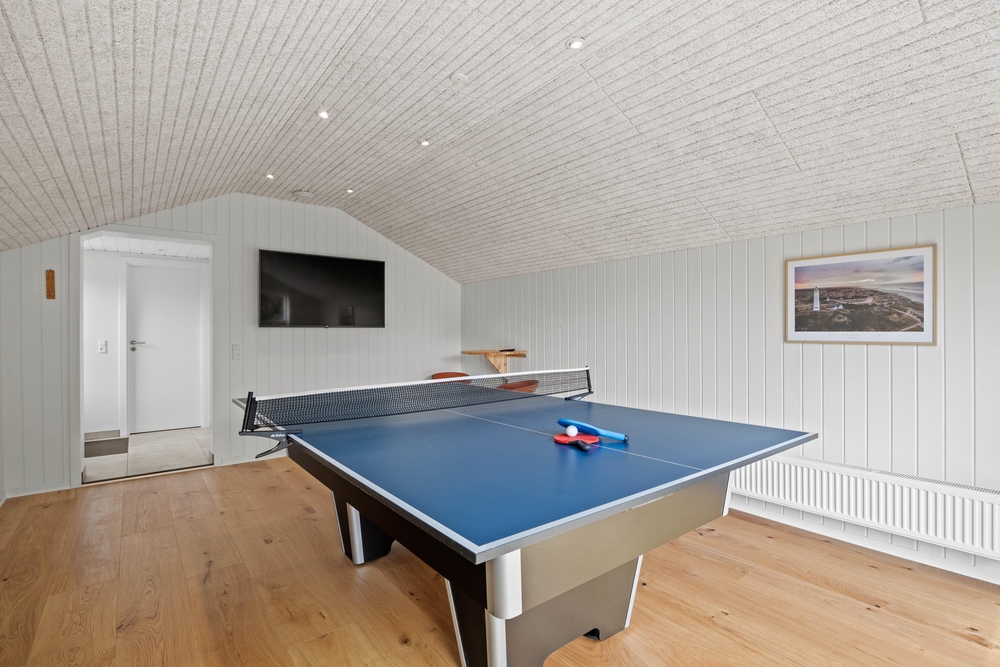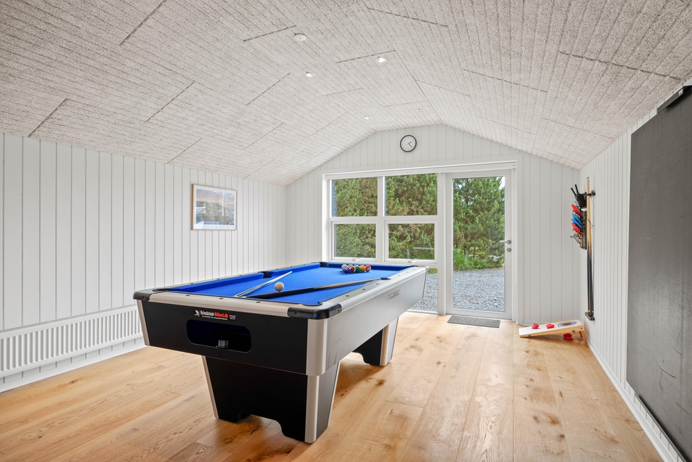 Die offene Küche ist mit hochwertigen und modernen Elektrogeräten, wie Spülmaschine, Induktionsherd und 200 l Gefriermöglichkeit ausgestattet. Hier macht das Kochen Spaß. Probiert doch auch mal ein typisch dänisches Rezept aus. Im Anbau findet ihr u. A. den Aktivitätsraum, mit Tischtennis und Poolbillard, in dem ihr euch auch bei Regen austoben könnt.