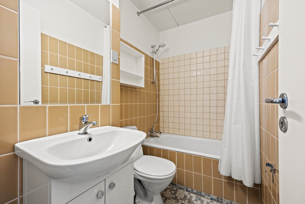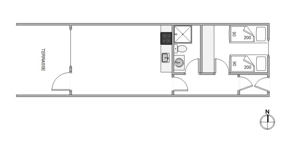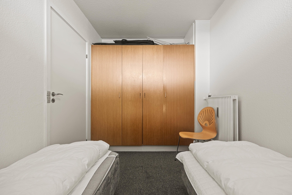 Das Appartment bietet alles, was ihr während eures Urlaubs braucht. Hier gibt es ein Schlafzimmer mit zwei 90x200cm Einzelbetten und ein Badezimmer mit Dusche. Waschmaschine und Trockner sind im gemeinsamen Wäscheraum zugängig.