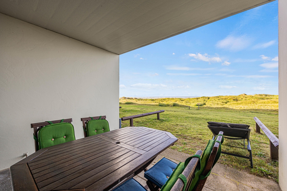 Die Terrasse des Appartments ist mit Gartenstühlen und Sonnenliegen ausgestattet, sodass ihr hier die warmen Sommertage verbringen könnt. Von der Terasse aus habt ihr einen wunderschönen Weitblick über die Nordsee und den weitläufigen Strand, der sich nur 50 Meter entfernt vom Ferienhaus befindet.