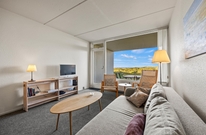 Der Wohnraum bietet eine gut ausgestattete Küche mit Geschirrspüler und Mikrowelle und liegt in offener Verbindung zum Essbereich und Wohnzimmer. Im Wohnzimmer könnt ihr es euch am Abend auf dem Sofa, vor dem Fernseher gemütlich machen und neue Energie für den nächsten Urlaubstag tanken.