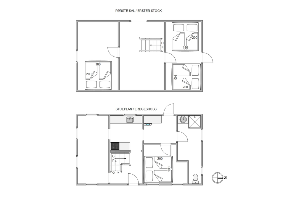 Das Gesamtareal des Hauses bezieht sich auf zwei Etagen. In der 1 Etage findet ihr die Stube, Esszimmer, Küche, Badezimmer und ein Schlafzimmer. In der 2 Etage befinden sich die restliche 3 Schlafzimmer und ein Aufenthaltsraum, indem ihr euch zurückziehen und entspannen könnt. Alle Schlafzimmer sind mit komfortablen Doppelbetten ausgestattet.