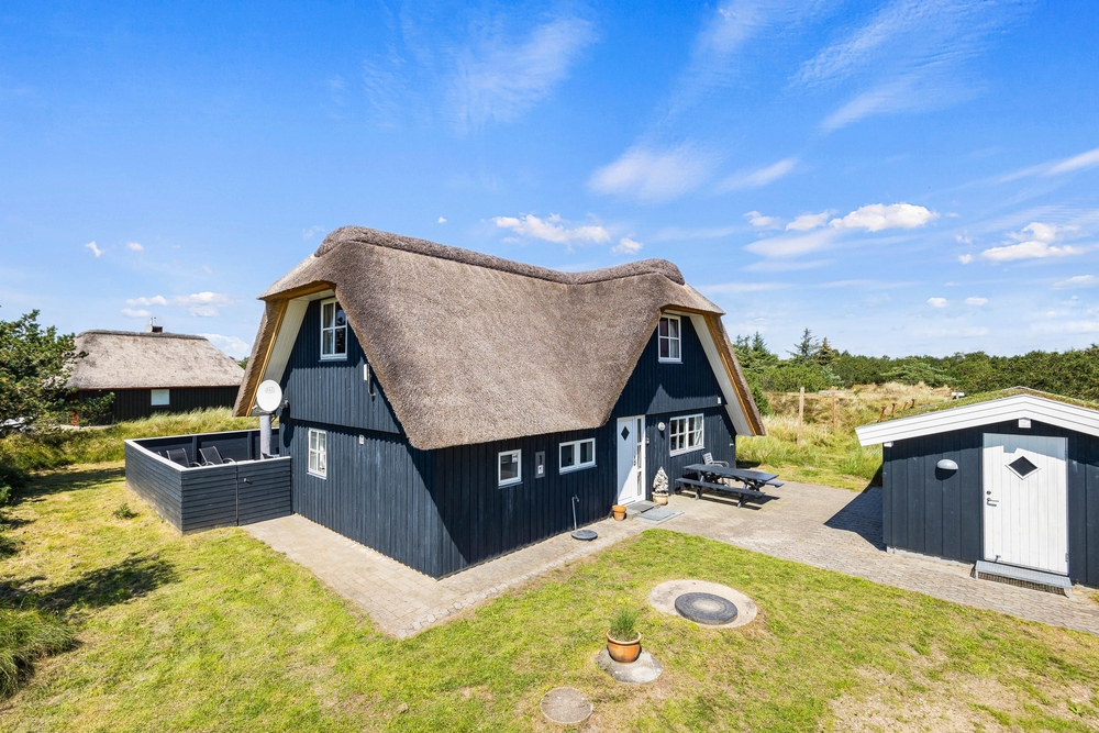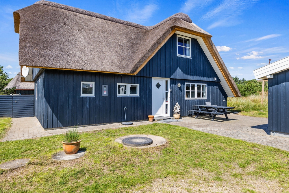 Im Svinget 17 steht dieses schöne Reetdach Haus, in einer ruhigen Lage mit viel Platz für die ganze Familie. Auf zwei Etagen verteilen sich 3 Schlafzimmer in denen bis zu 7 Personen unterkommen. In den hellen, lichtdurchfluteten Räumen könnt ihr es euch sofort gemütlich machen und euch vom stressigen Alltag erholen. Für die körperliche Entspannung sorgen Sauna und Whirlpool, während die Seele beim Blick auf den Horizont der Nordsee zur Ruhe kommt. 2 Hunde dürfen sich hier auch auf Dänemark Urlaub freuen. Eine Lademöglichkeit für ein Elektroauto ist ebenfalls vorhanden. Relevantes Kabel ist mitzubringen (Typ 2)