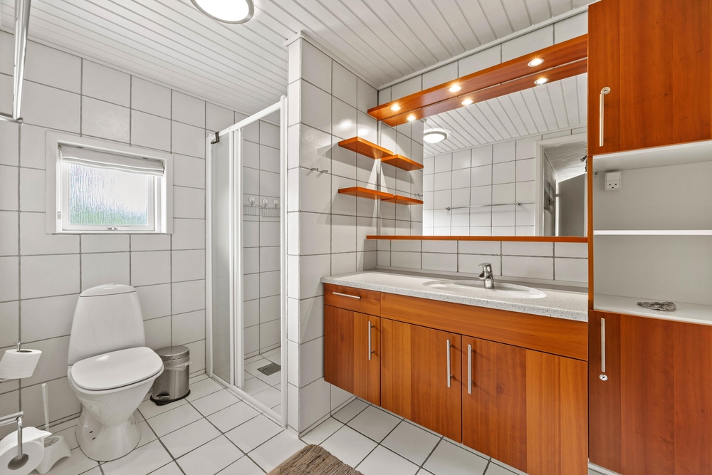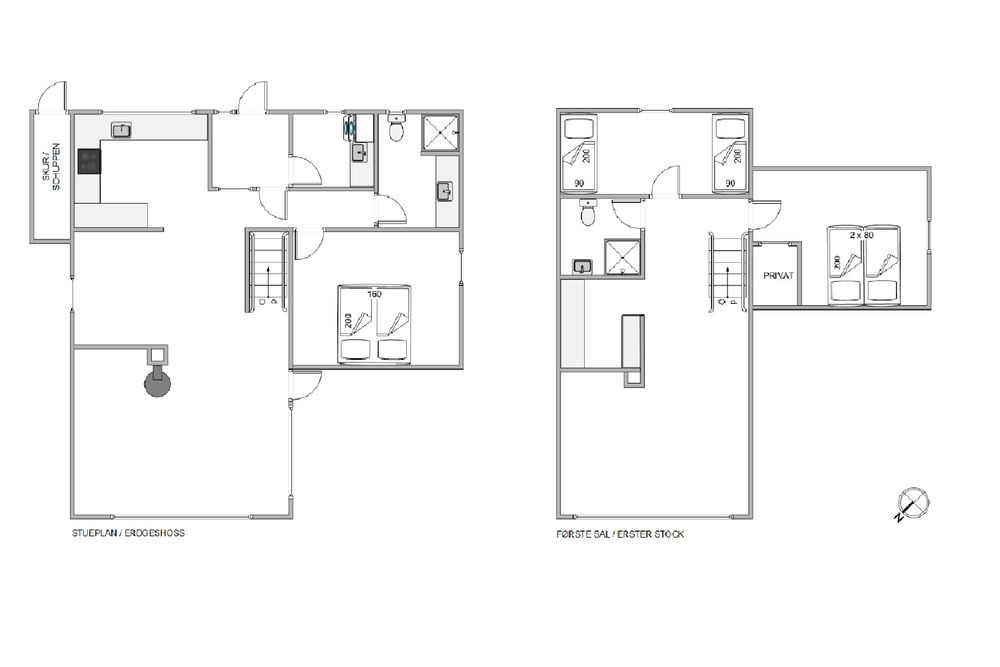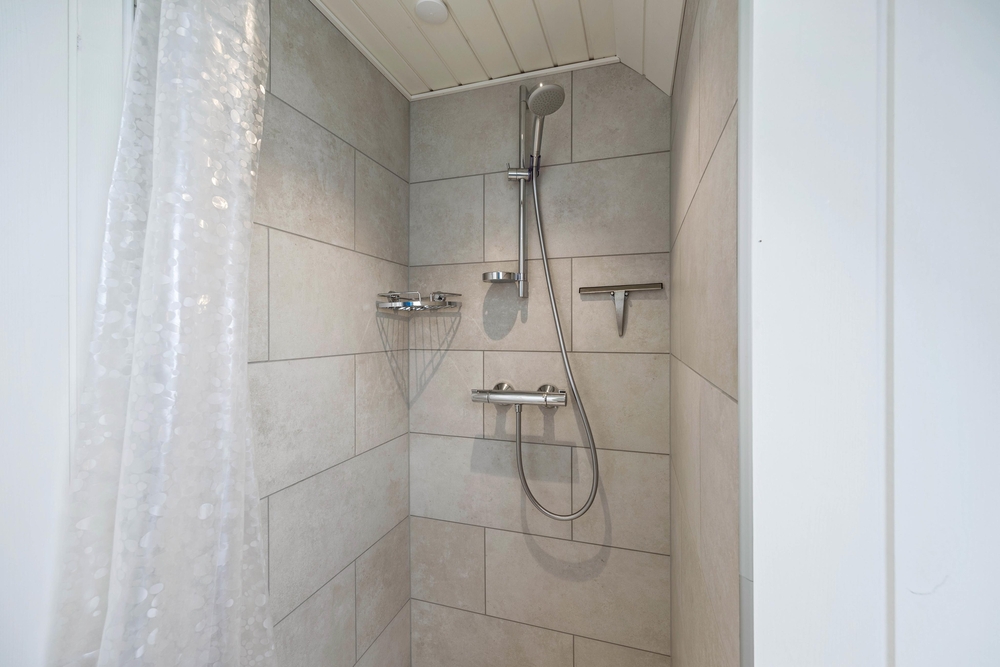 Die Aufteilung ist ideal für einen gemeinsamen Urlaub mit Freunden. Jeder kann hier sein eigenes Reich beziehen. Im Obergeschoß sind zwei Schlafzimmer, das Eine davon mit Doppelbett und das andere mit zwei Einzelbetten. Außerdem gibt es hier ein Badezimmer. Im Erdgeschoss ist noch ein weiteres Schlafzimmer, mit Doppelbett und ein Badezimmer mit Fußbodenheizung.