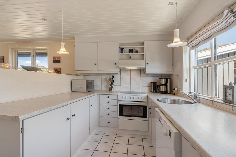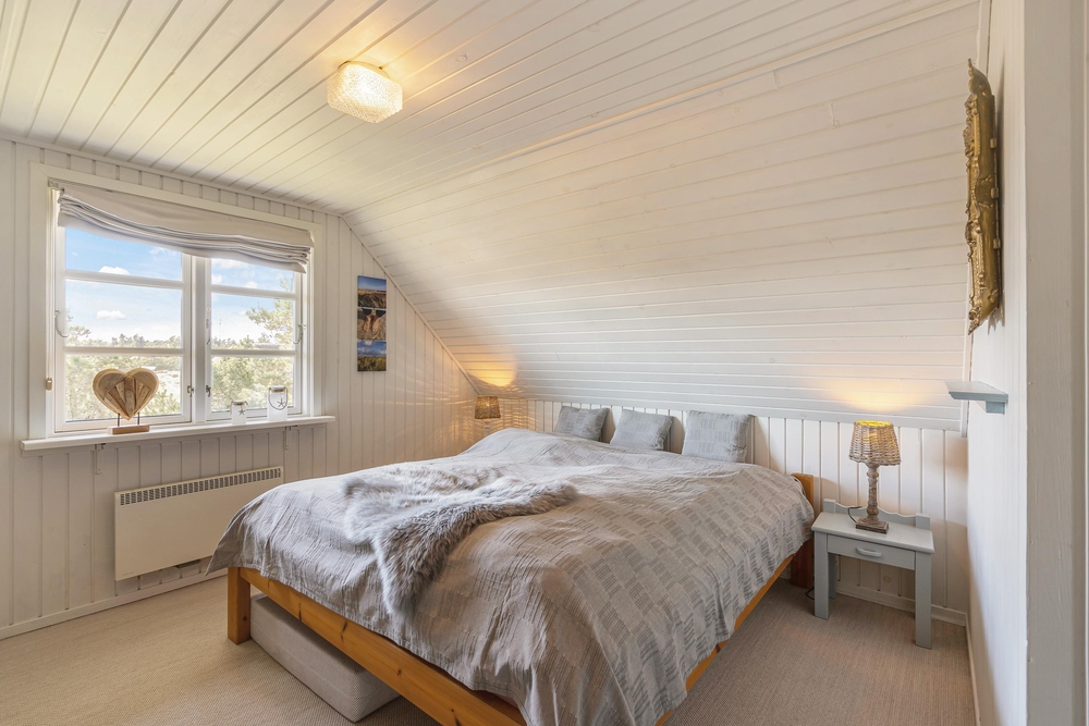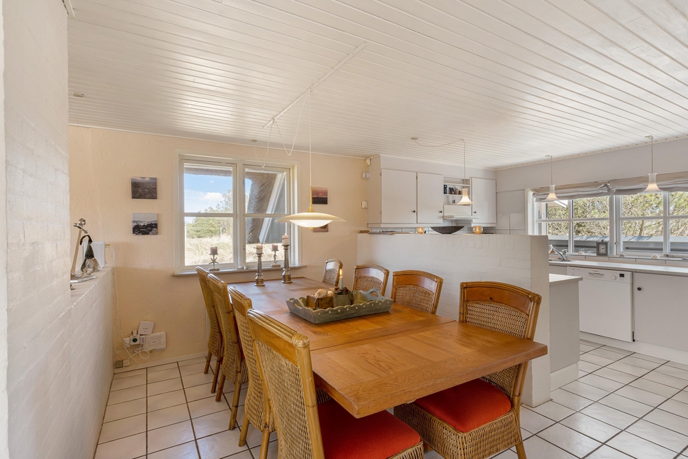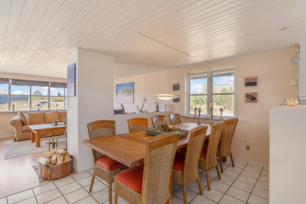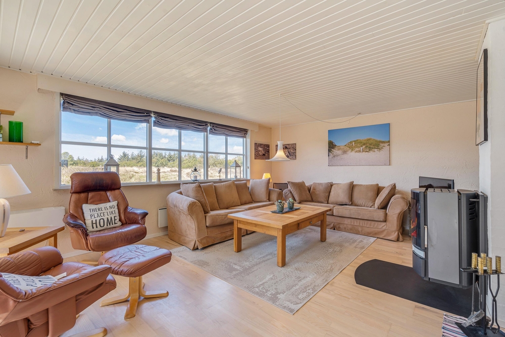 Die 143 m² von diesem Ferienhaus verteilen sich auf zwei Etagen. Die lichtdurchfluteten Räume, mit der hellen Einrichtung und dem Kaminofen, geben diesem Haus eine ganz besonders freundliche, und gemütliche Atmosphäre.