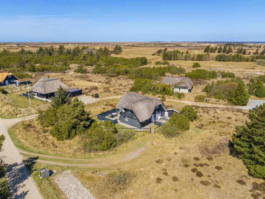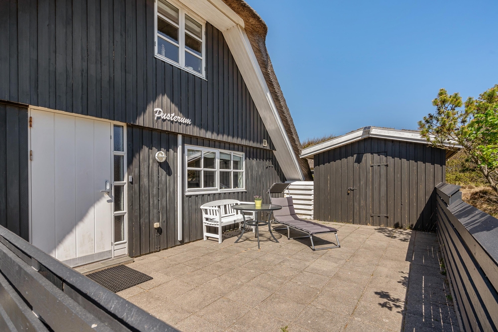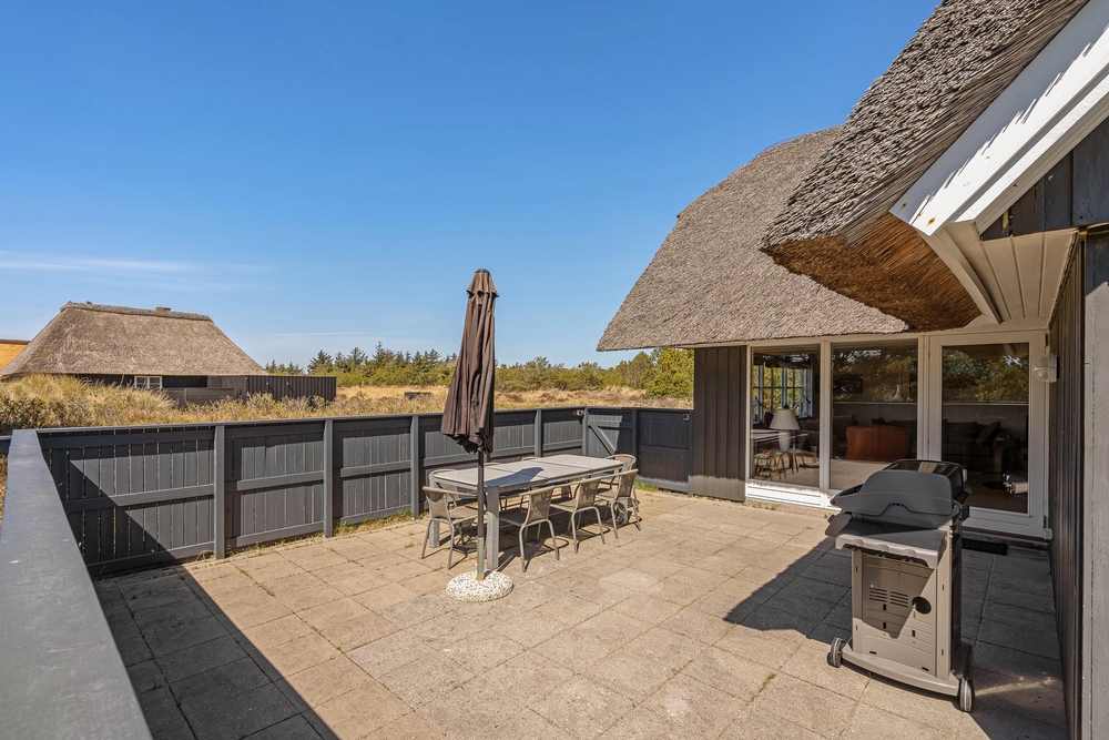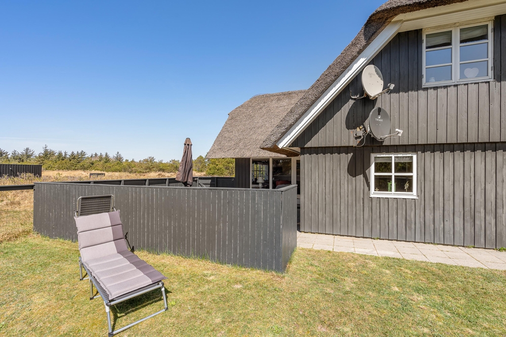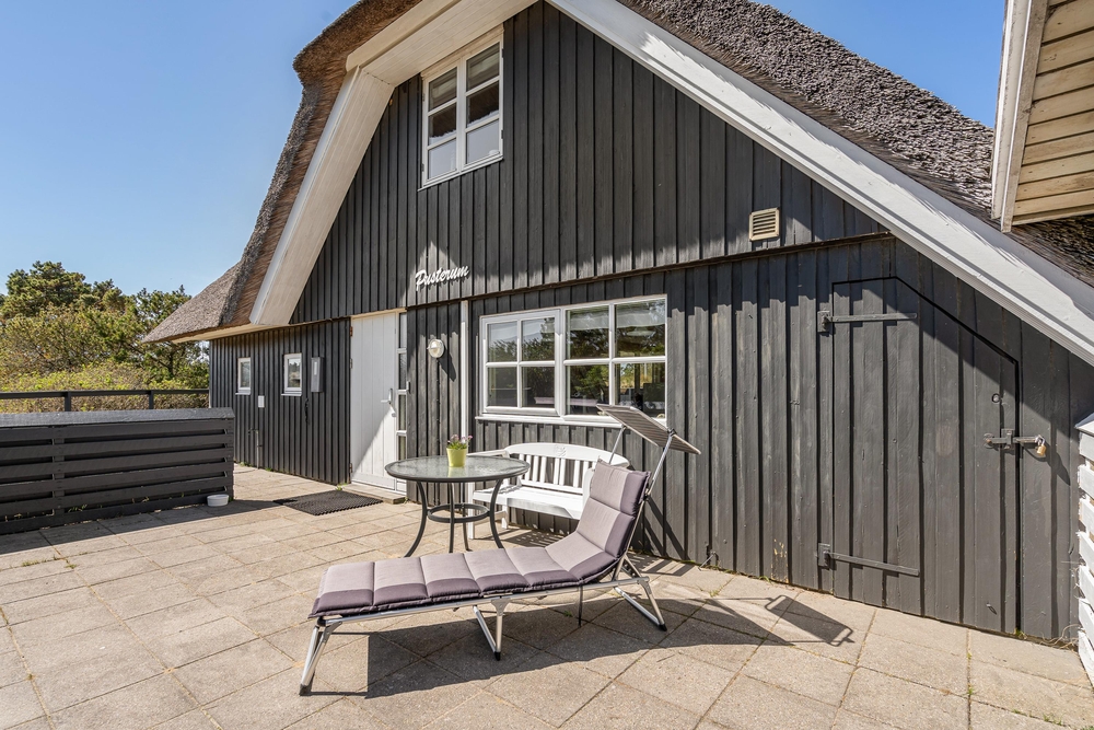 Umgeben von duftenden Heckenrosen, Heidelandschaft und Kiefern könnt Ihr an der frischen Meeresluft so richtig abschalten. Die naturnahe Lage mit den verschiedenen Terrassen gibt Euch Ruhe und Raum, um die Akkus wieder aufzuladen. Ihr habt gleich mehrere Plätzchen rund um das Haus, um die frische Meeresluft zu genießen. Eine der Terrassen ist komplett eingezäunt, so spricht nichts dagegen Euren Hund frei laufen zu lassen.
