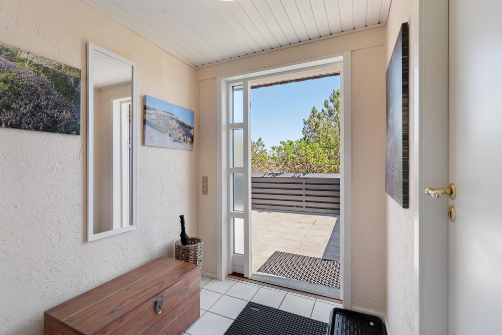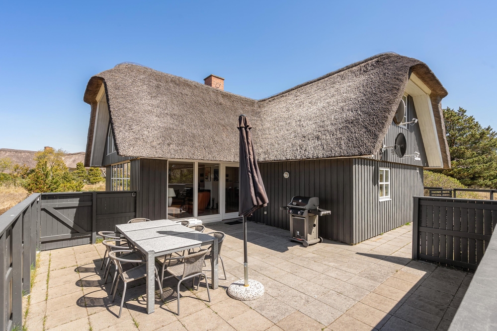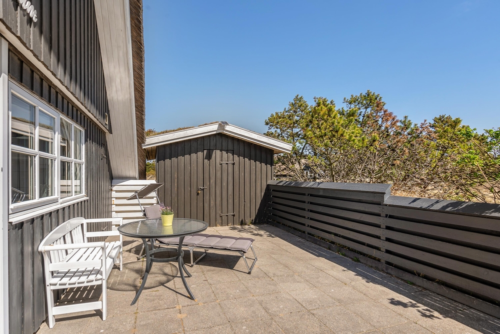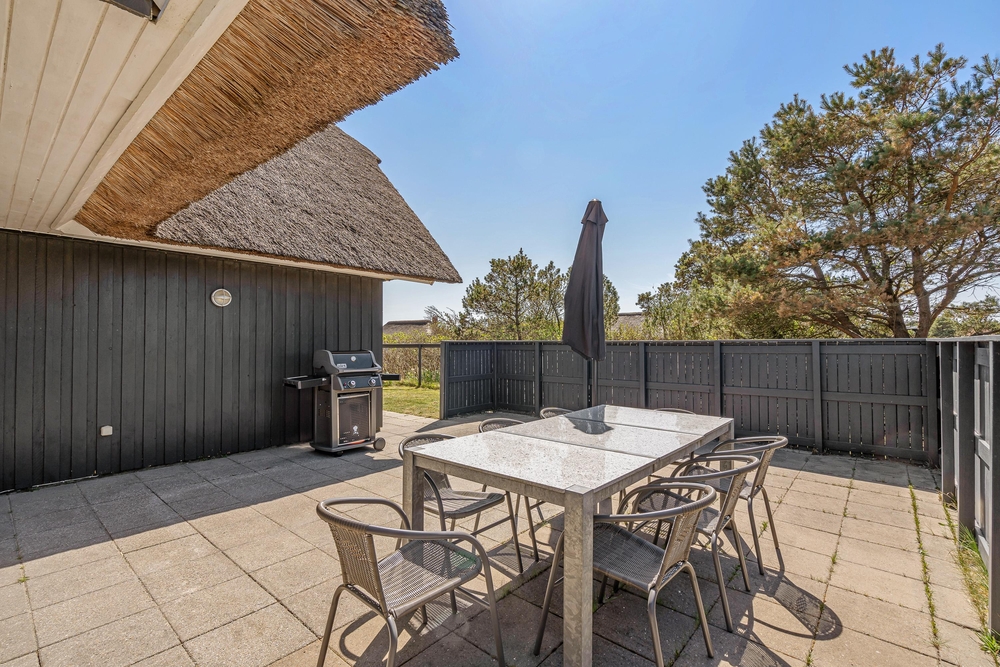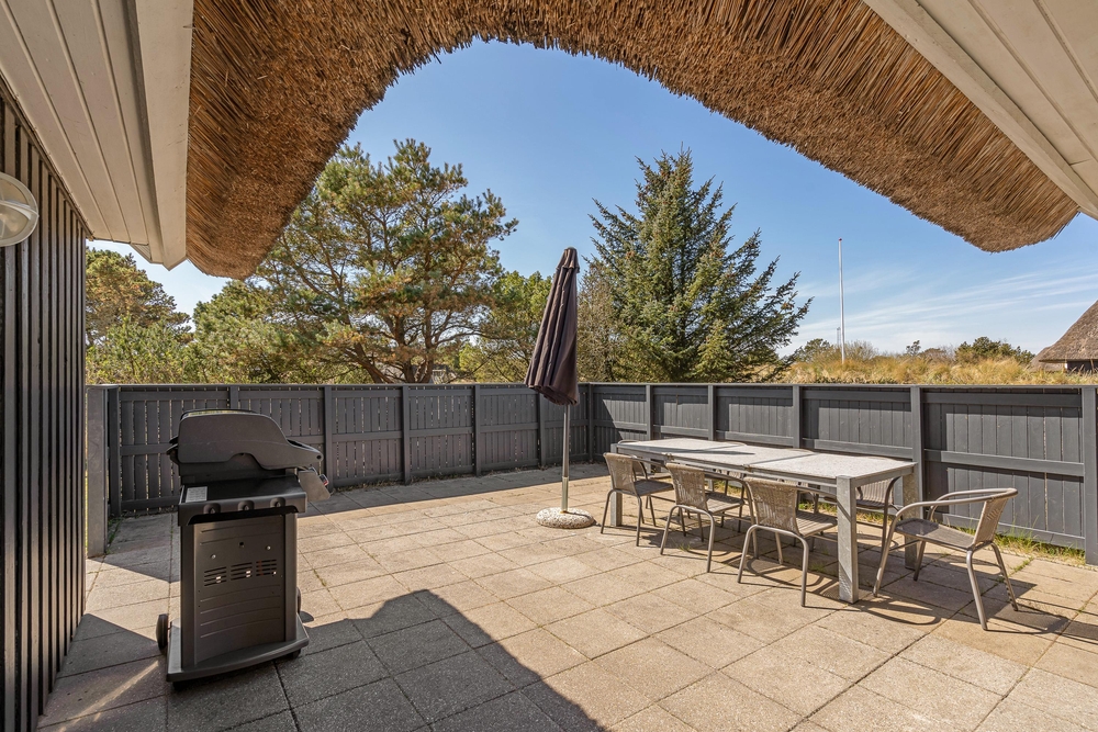 Umgeben von duftenden Heckenrosen, Heidelandschaft und Kiefern könnt Ihr an der frischen Meeresluft so richtig abschalten. Die naturnahe Lage mit den verschiedenen Terrassen gibt Euch Ruhe und Raum, um die Akkus wieder aufzuladen. Ihr habt gleich mehrere Plätzchen rund um das Haus, um die frische Meeresluft zu genießen. Eine der Terrassen ist komplett eingezäunt, so spricht nichts dagegen Euren Hund frei laufen zu lassen.