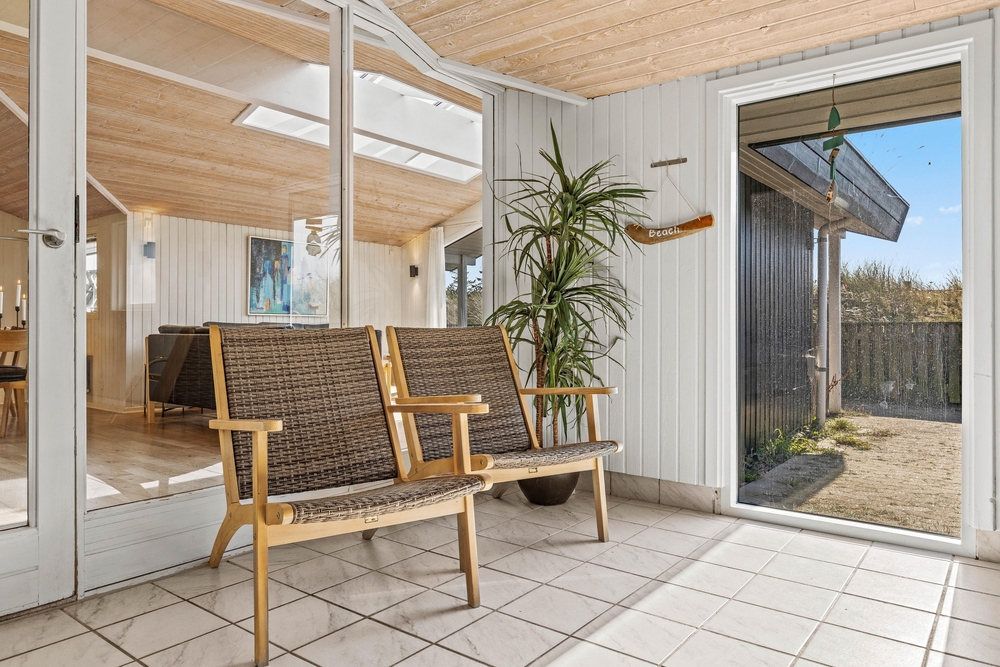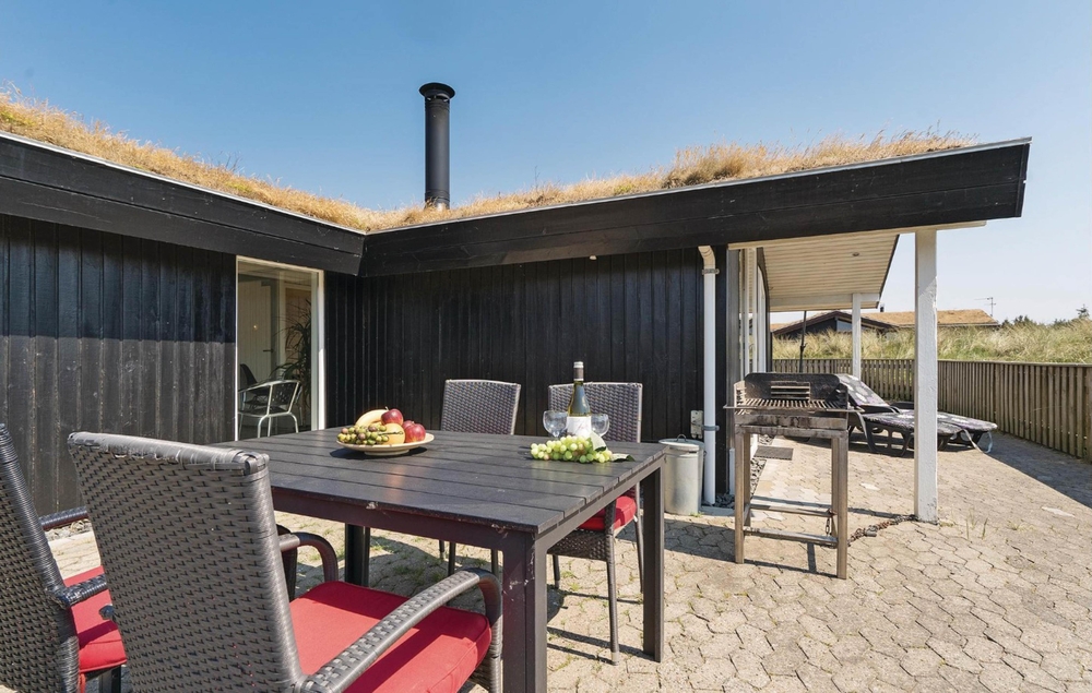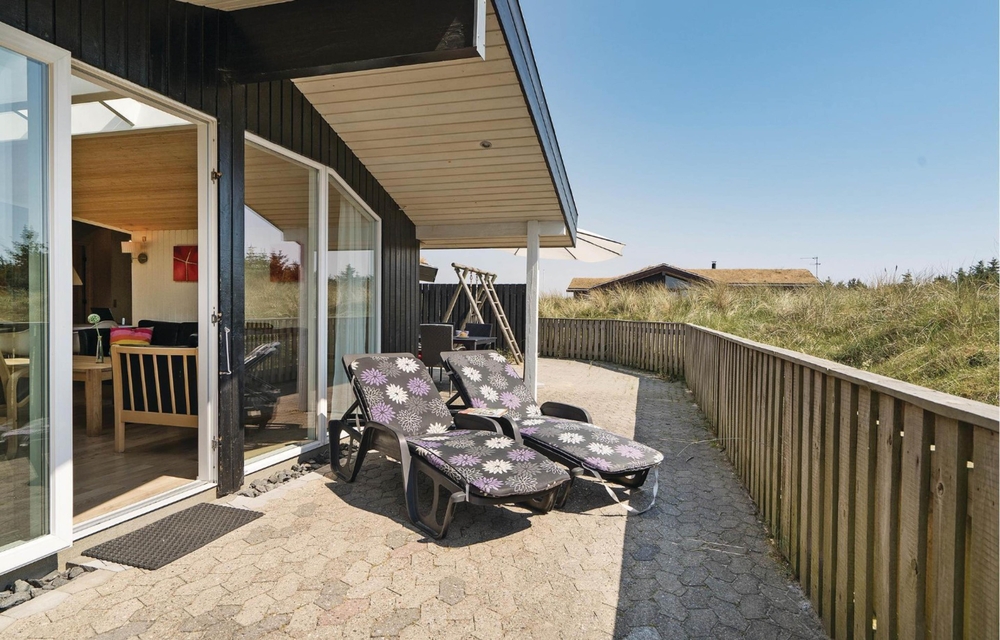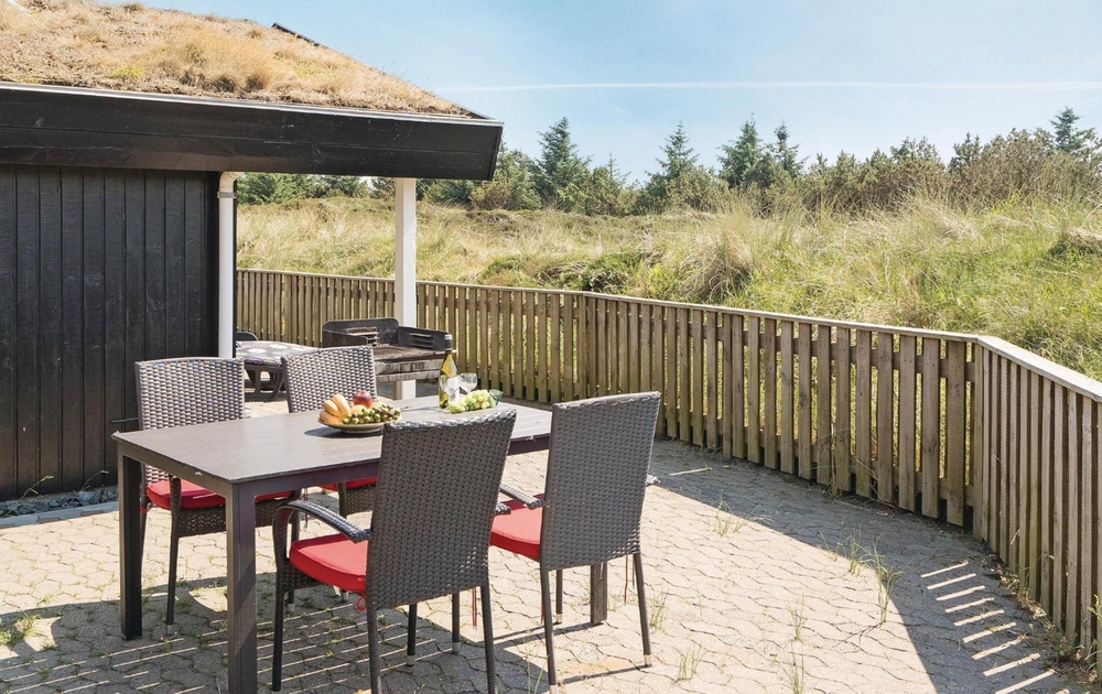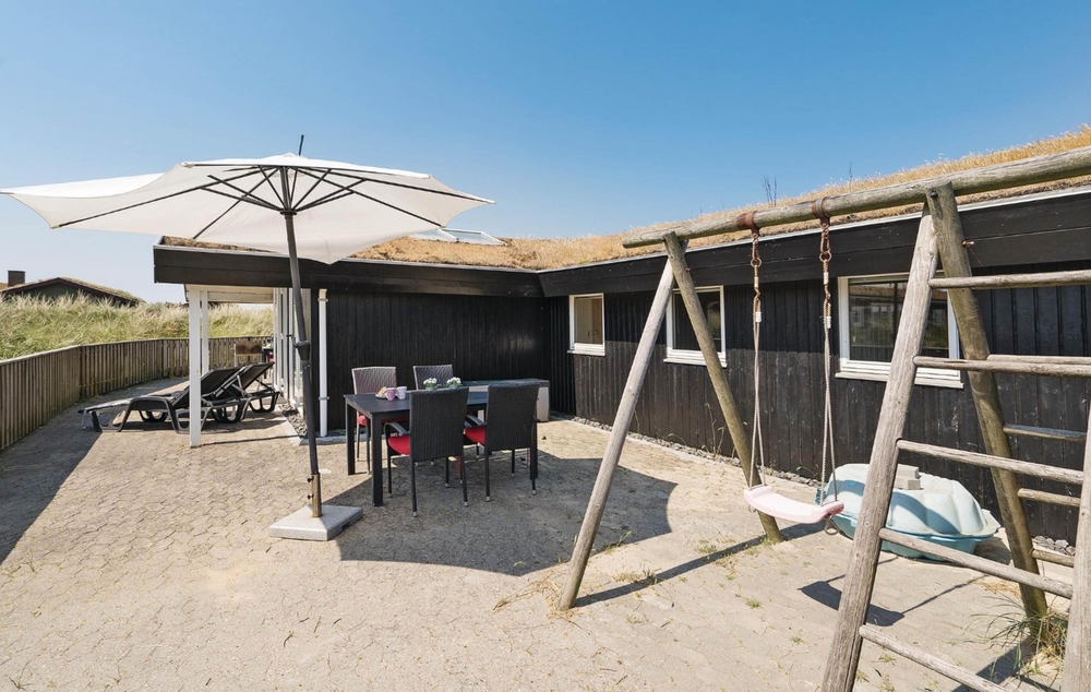 Das Ferienhaus liegt in einem ruhigen Ferienhausgebiet, umgeben von der schönen Natur Westjütlands. Im Nordwesten hat das Ferienhaus eine schöne geflieste Terrasse, auf der ihr stundenlang die Sonne und laue Sommerabende mit einem leckeren Grillessen genießen könnt. Macht es euch mit einem Krimi auf den Gartenmöbeln gemütlich, lasst die Kinder spielen und die Hunde herumlaufen, das ist Urlaub für die Seele. Für die Kleinsten gibt es einen kleinen Sandkasten und eine Schaukel.