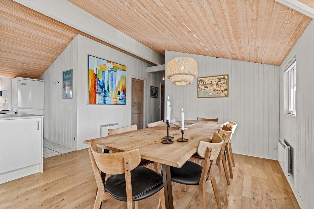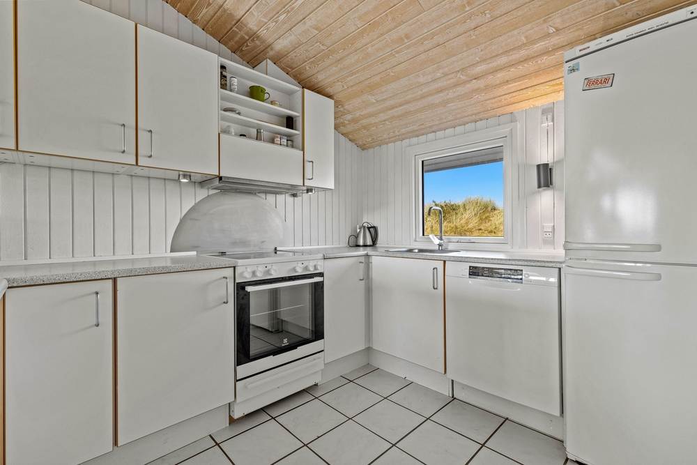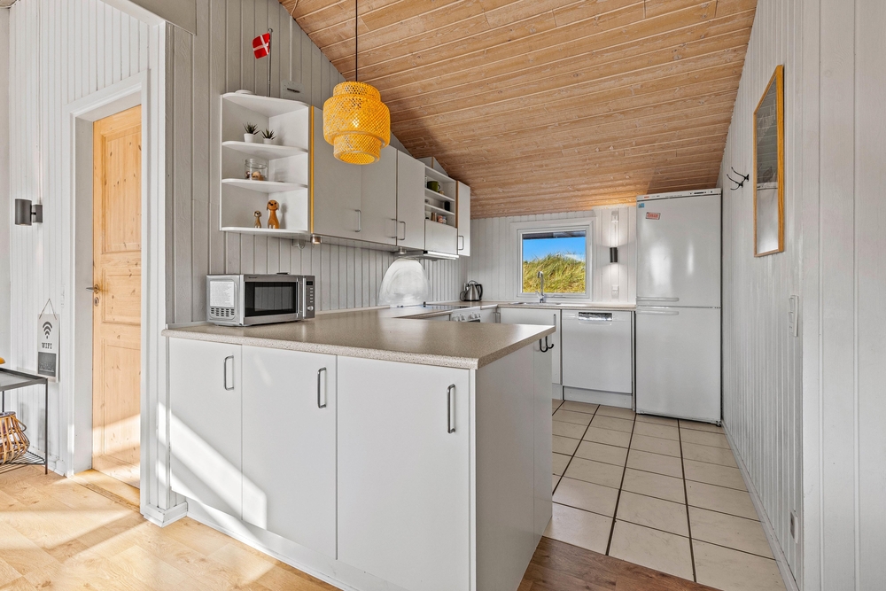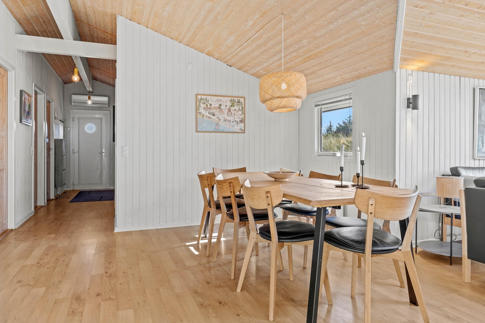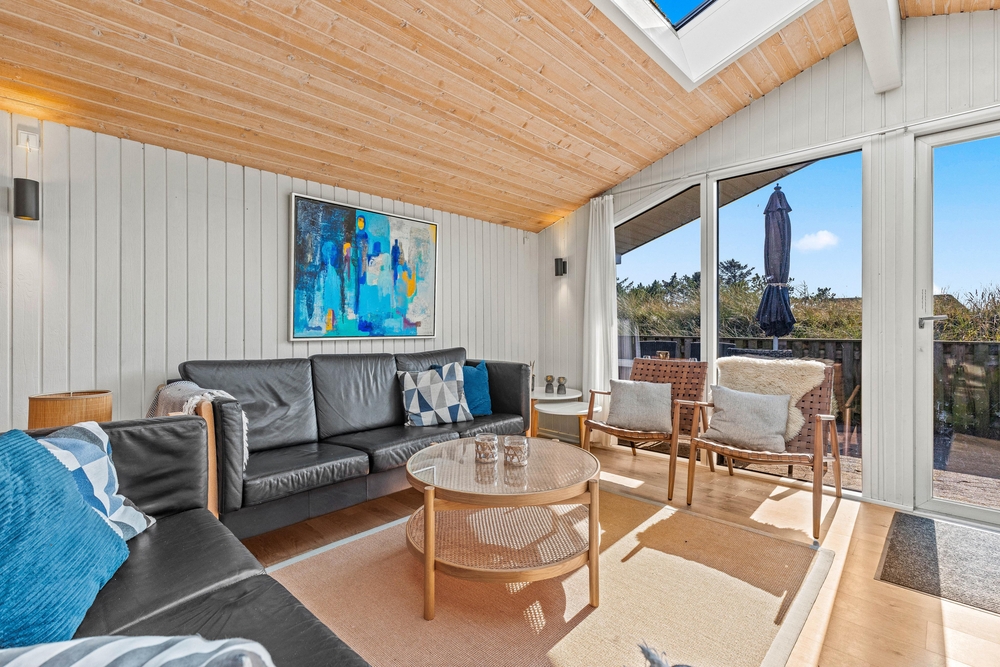Das Ferienhaus liegt in einem ruhigen Ferienhausgebiet, umgeben von der schönen Natur Westjütlands. Im Nordwesten hat das Ferienhaus eine schöne geflieste Terrasse, auf der ihr stundenlang die Sonne und laue Sommerabende mit einem leckeren Grillessen genießen könnt. Macht es euch mit einem Krimi auf den Gartenmöbeln gemütlich, lasst die Kinder spielen und die Hunde herumlaufen, das ist Urlaub für die Seele. Für die Kleinsten gibt es einen kleinen Sandkasten und eine Schaukel.