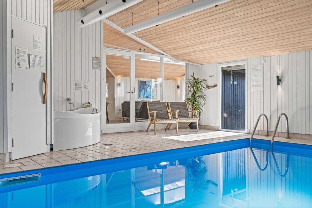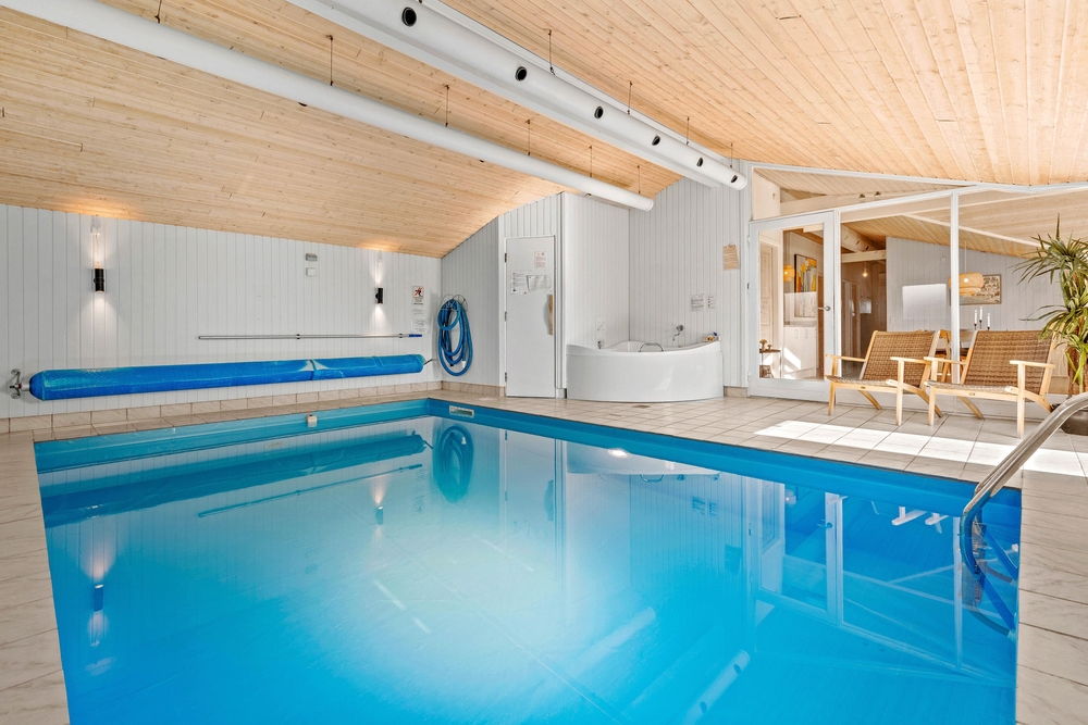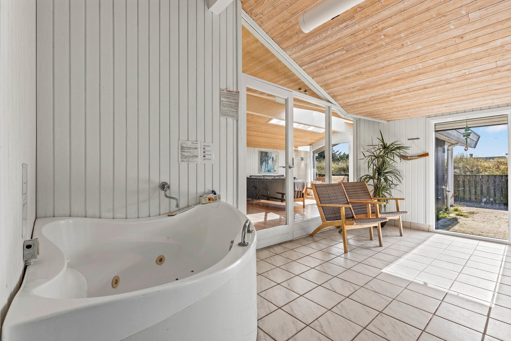 Willkommen in diesem schönen Ferienhaus in Sydslugen 19, ein helles und geräumiges Ferienhaus von 165 m², in dem ihr viele schöne Stunden im Poolraum verbringen könnt. Man kann fast von einem kleinen Wellnessbereich sprechen. Der Pool hat eine Größe von 15 m², groß genug, um Wasserball zu spielen. Zusätzlich gibt es im Ferienhaus einen großen Whirlpool und eine Sauna ? hier kommen sowohl Erwachsene als auch Kinder voll auf ihre Kosten. Auch bei schlechtem Wetter kommt hier keine Langeweile auf.