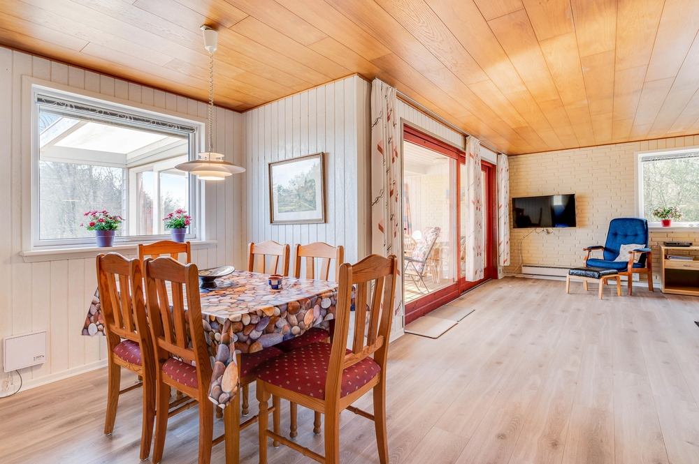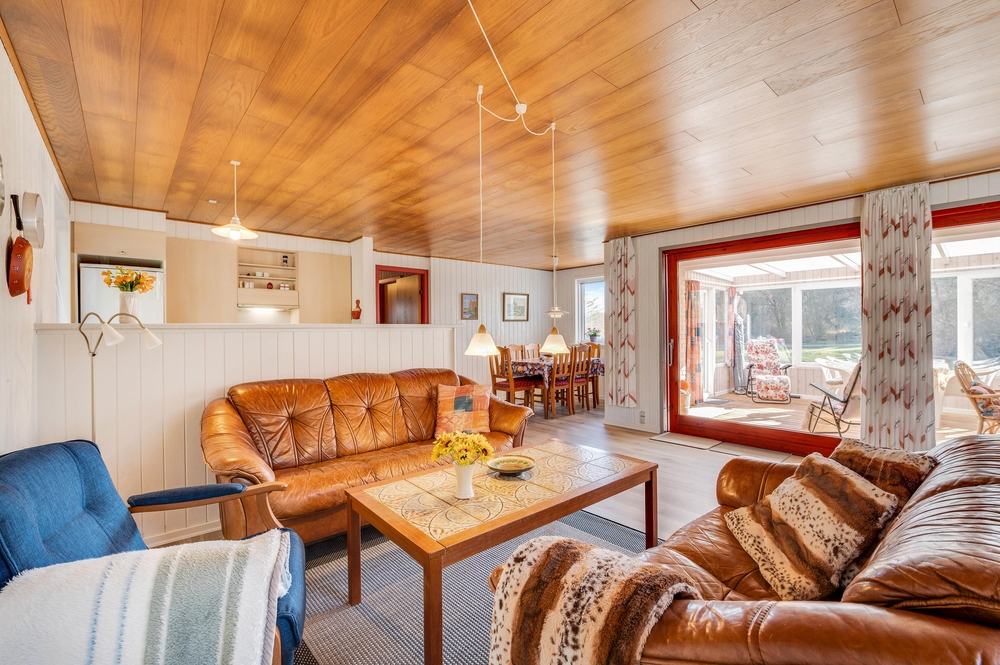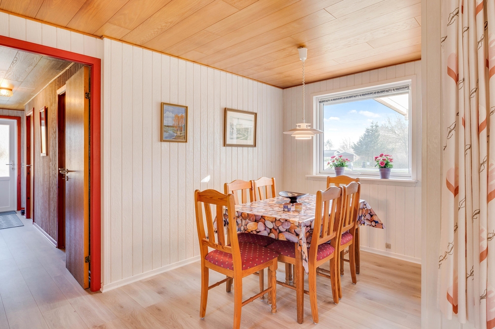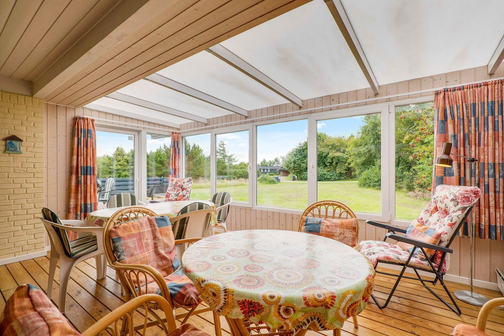 Das charmante, ältere Ferienhaus in Lodbjerg Hede ist der Inbegriff für gemütliche Sommerhausatmosphäre. Von der Sofagruppe habt ihr einen direkten Blick in den gemütlichen Wintergarten, der ideal ist, um die erste Tasse Kaffee am Morgen zu genießen oder einen Spielenachmittag zu veranstalten.