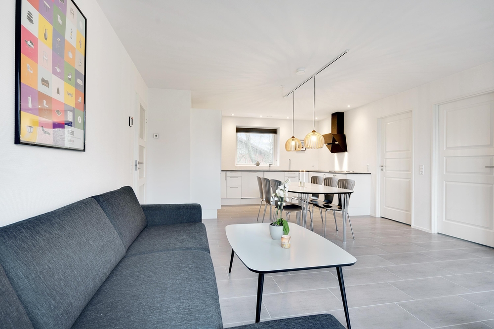 Ein Schlafzimmer mit Doppelbett sowie zwei Zimmer mit jeweils zwei Einzelbetten, ein offener Wohnbereich mit integrierter Küche sowie ein Badezimmer mit Fussbodenheizung bietet auf insgesamt 90m2 Platz für bis zu 6 Personen. Geschirrspüler, Waschmaschine und Trockner erleichtern euch den Alltag ? insbesondere, solltet ihr kleinere Kinder dabeihaben.
