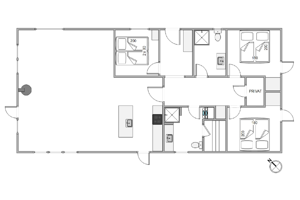 Verteilt auf drei Schlafzimmer mit jeweils einem Doppelbett, bietet euch das Ferienhaus genügend Platz für bis zu 6 Personen und die beiden Badezimmer sorgen dafür, dass es morgens zu keinem Stau kommt. In einem der beiden Bäder befindet sich die Infrarotsauna, in der ihr euch nach einem langen Tag an der frischen Luft wieder aufwärmen könnt.