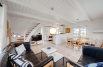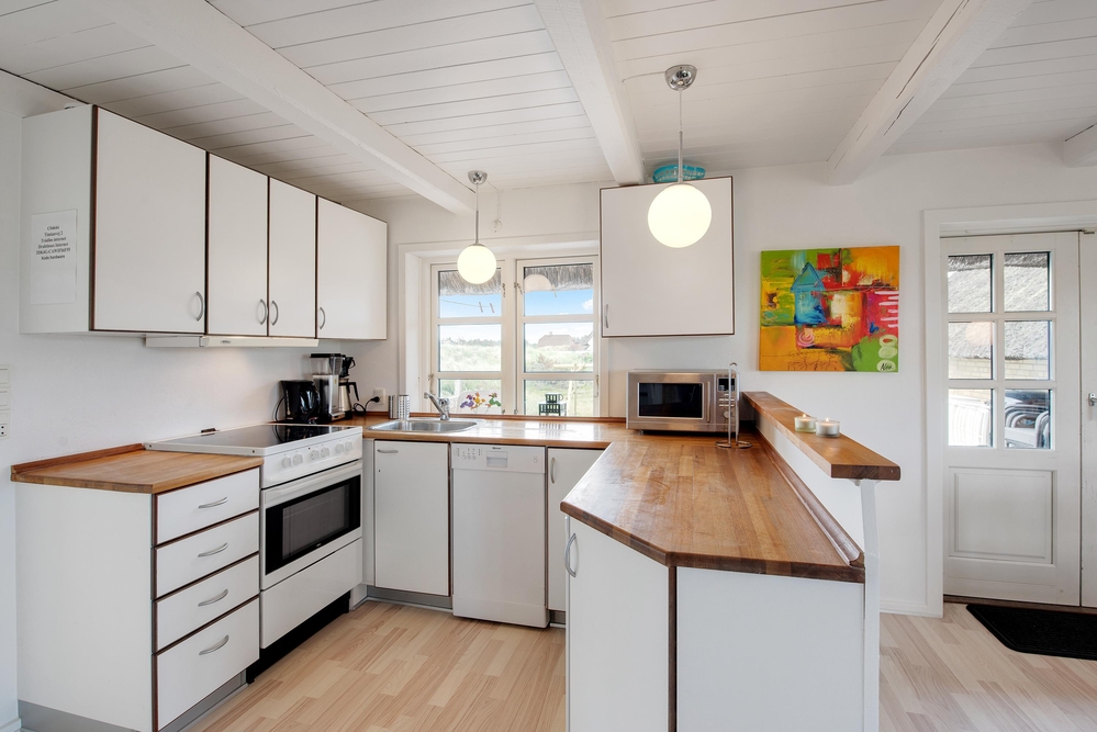 Das Reetgececkte Ferienhaus hat 2 Stockwerke von insgesamt 88 Quadratmetern und bietet Platz für 6 Urlauber. Es wurde in einem klassischen Ferienhausstim eingerichtet. Es gibt hier 2 Badezimmer, und mit Hilfe des Geschirrspühlers und der Waschmaschine sind die praktischen Tätigkeitem im Urlaub schnell erledigt. Im Aufenthaltsraum bei der offenen Küche könnt ihr abends zusammen Brettspiele spielen oder mit einem Glas Wein den Abend ausklingen lassen.