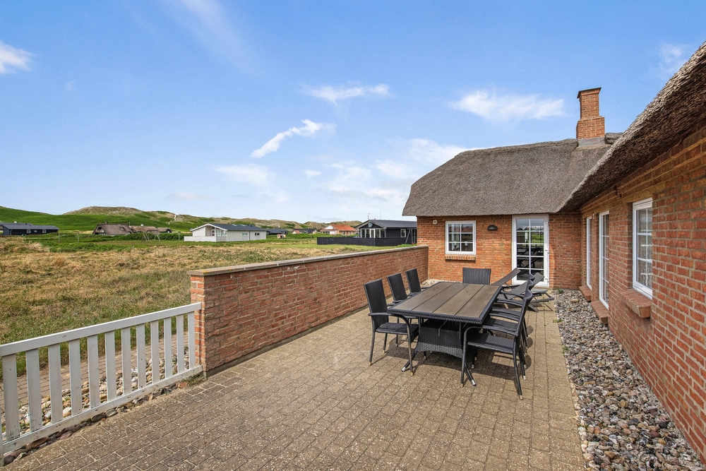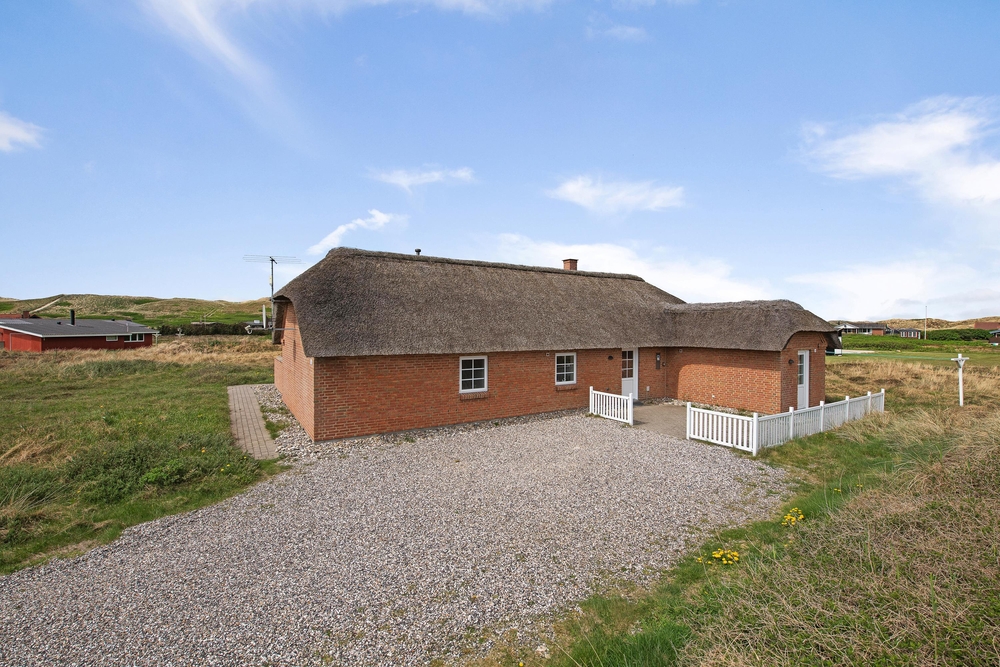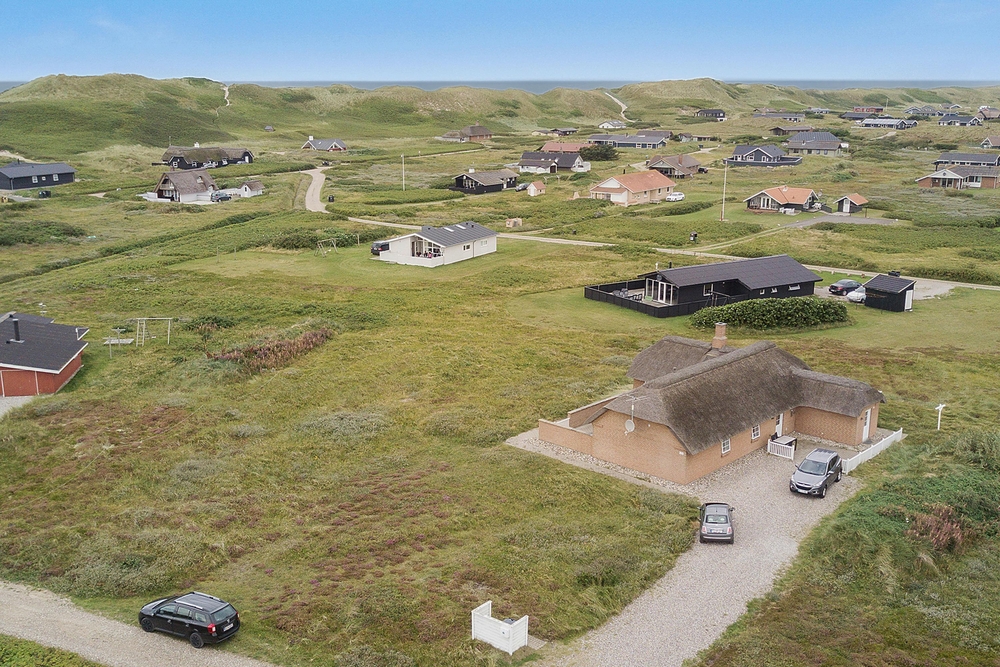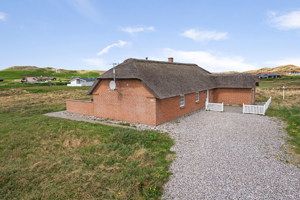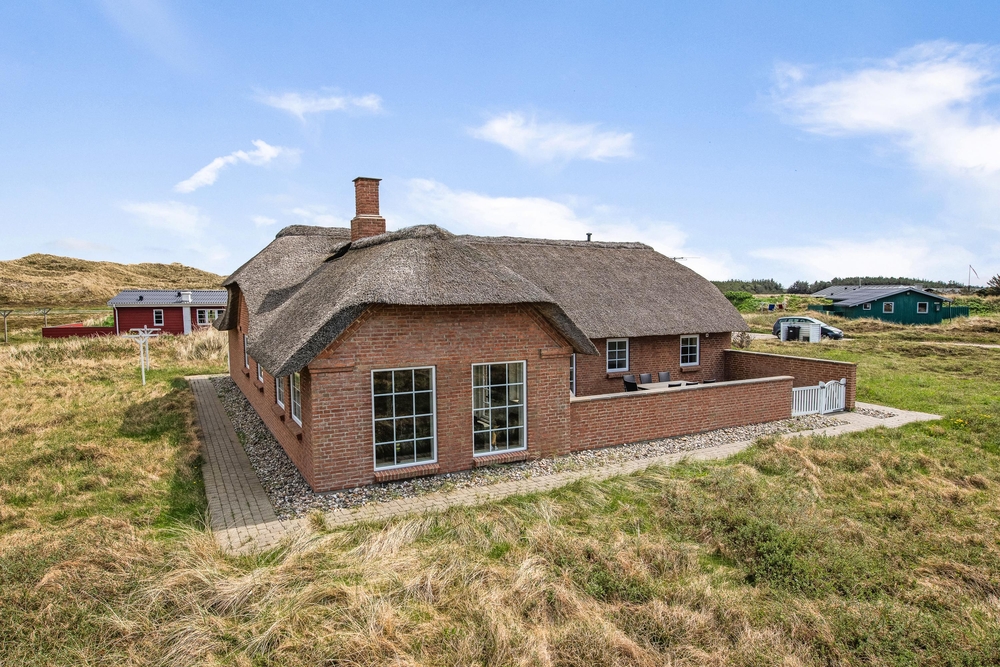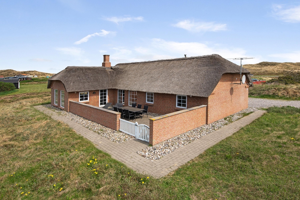 Das Ferienhaus liegt nur wenige Gehminuten vom Strand entfernt und bietet eine herrliche Aussicht auf die umliegende Dünenlandschaft.
