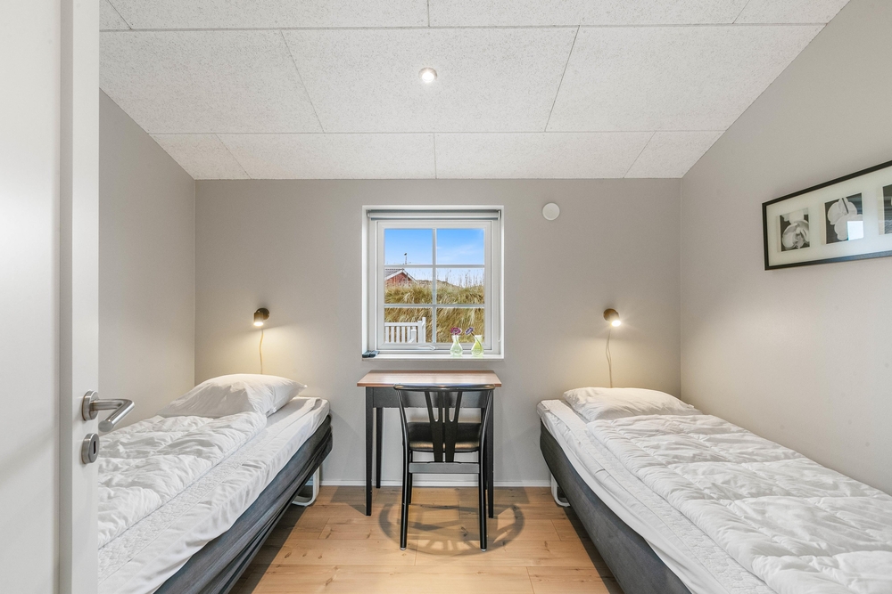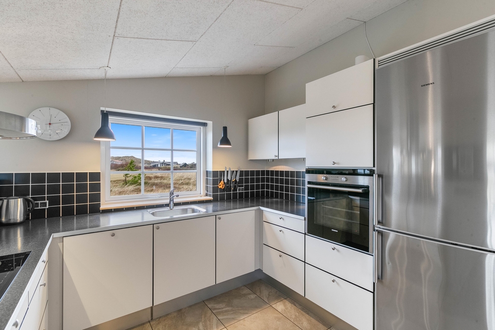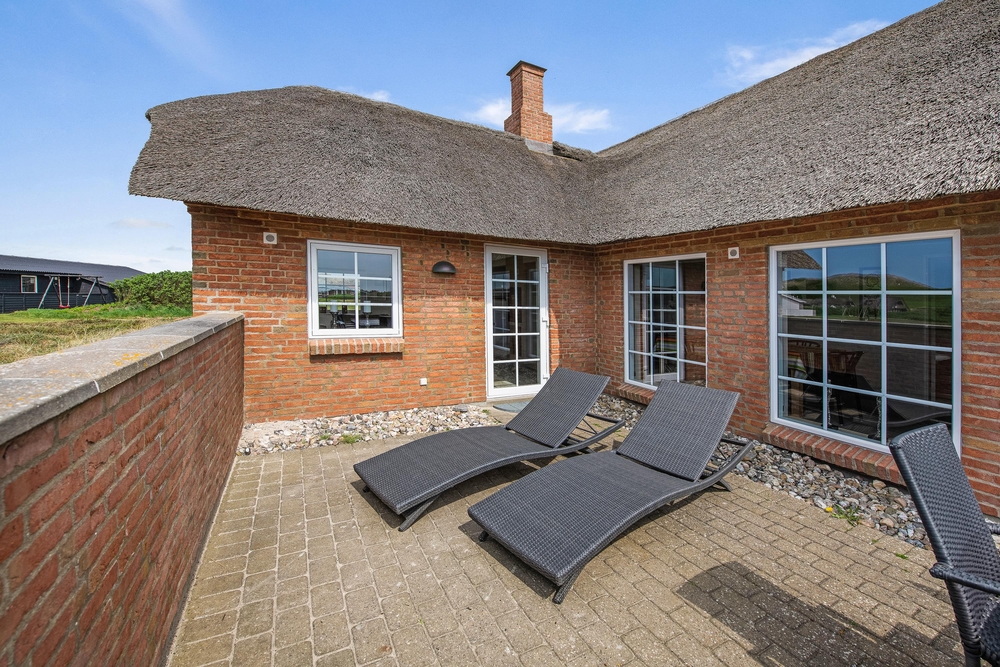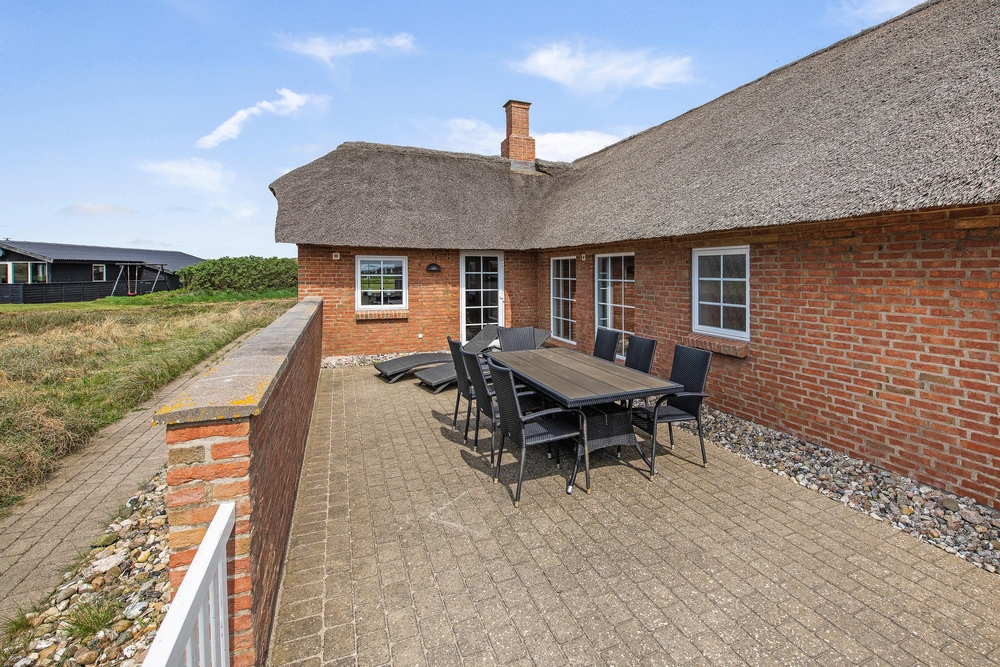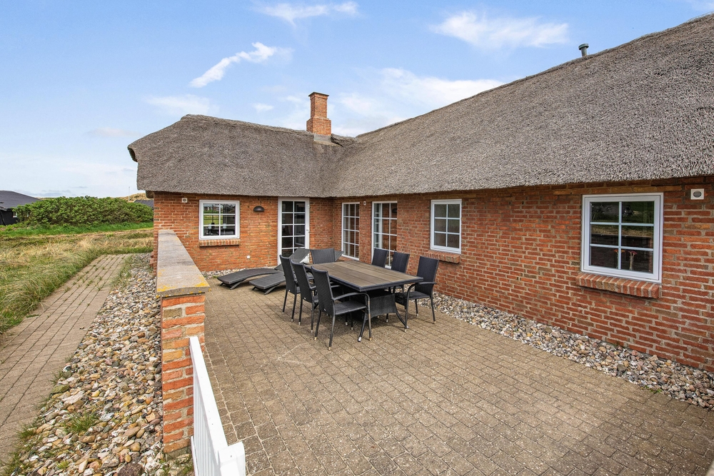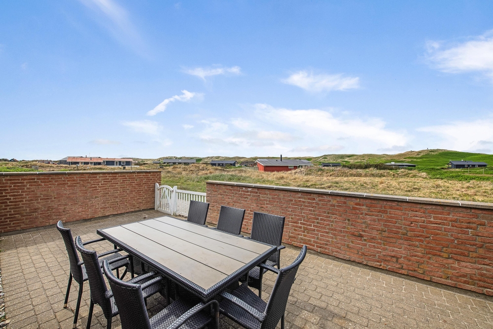 Das Ferienhaus liegt nur wenige Gehminuten vom Strand entfernt und bietet eine herrliche Aussicht auf die umliegende Dünenlandschaft.