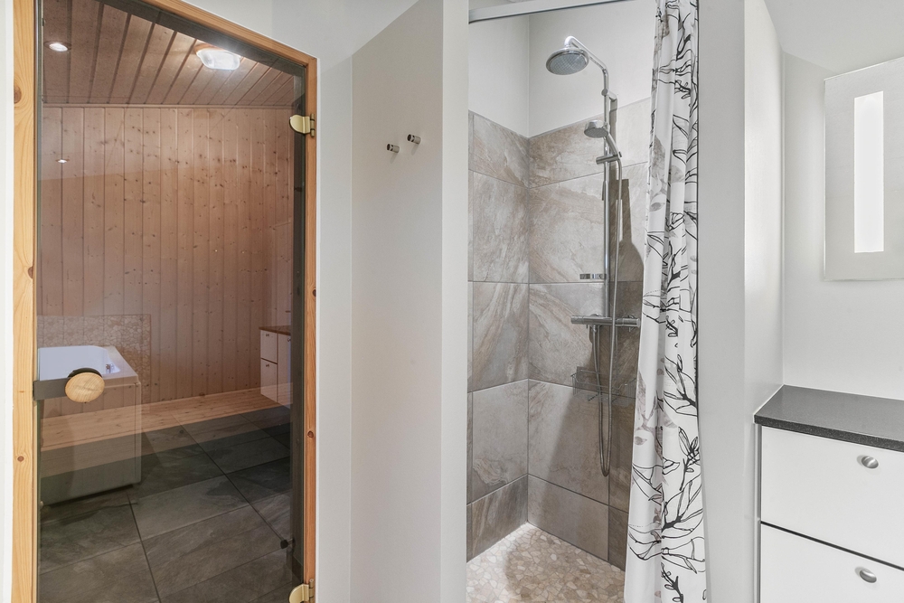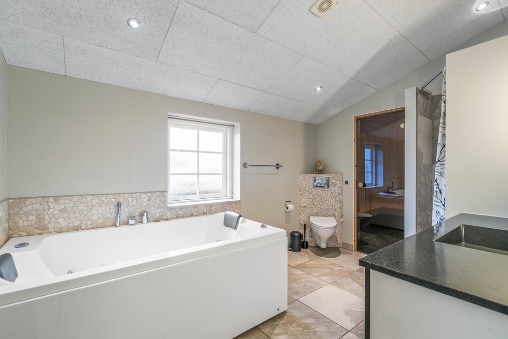 Für entspannte Stunden steht ein schöner Whirlpool und eine große Sauna im schicken Badezimmer zur Verfügung. In allen drei Schlafräumen stehen jeweils ein extra Fernseher mit Receiver für euch bereit, so dass Ihr hier auch deutsche Programme sehen könnt.