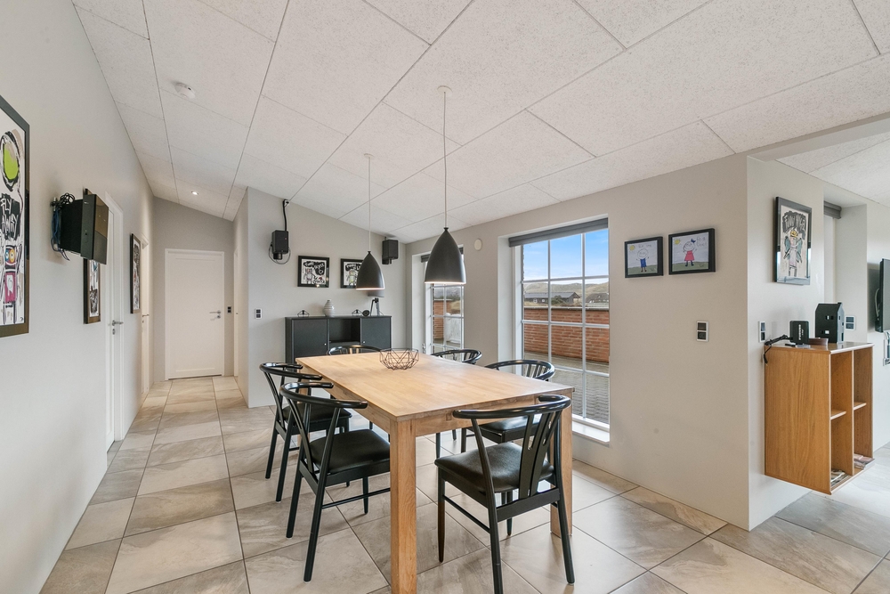 Ein fantastisches Luxusferienhaus für den anspruchsvollen Gast. Das Haus liegt auf einem Naturgrundstück nur ein paar hundert Meter vom Strand entfernt. Auf der geschlossenen Terrasse kannst du die schöne Aussicht und die frische Luft genießen.