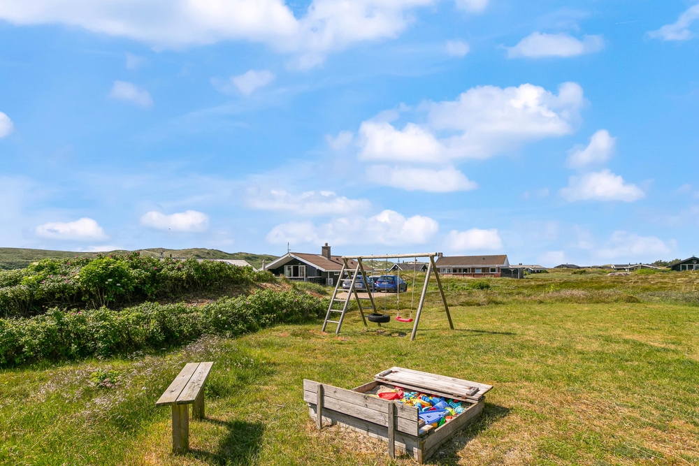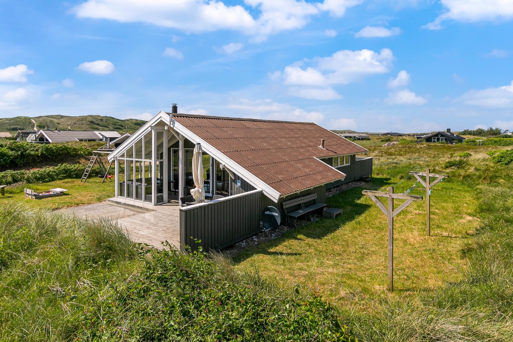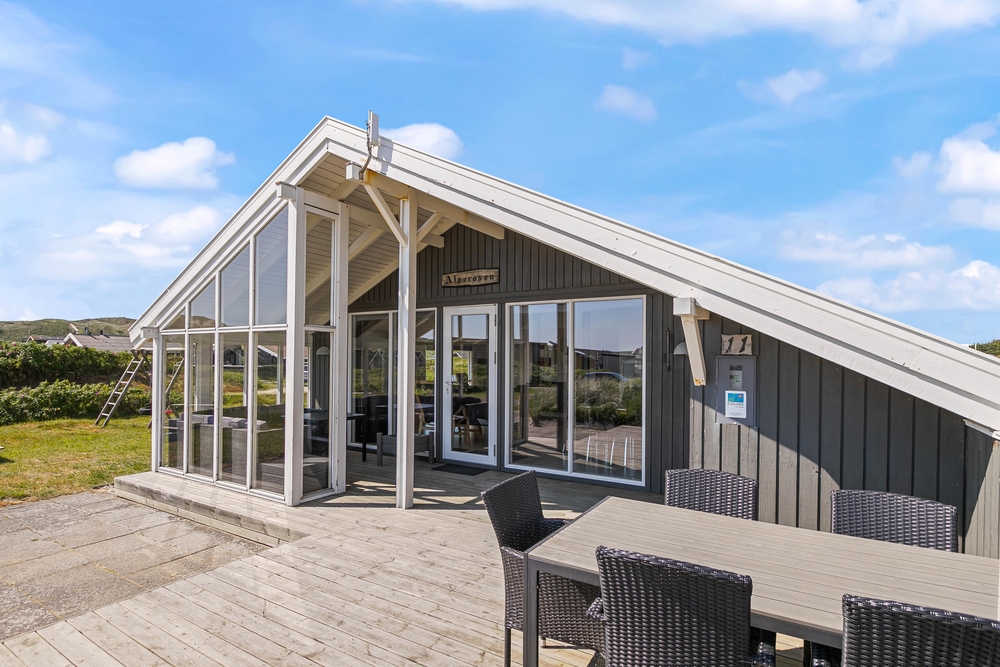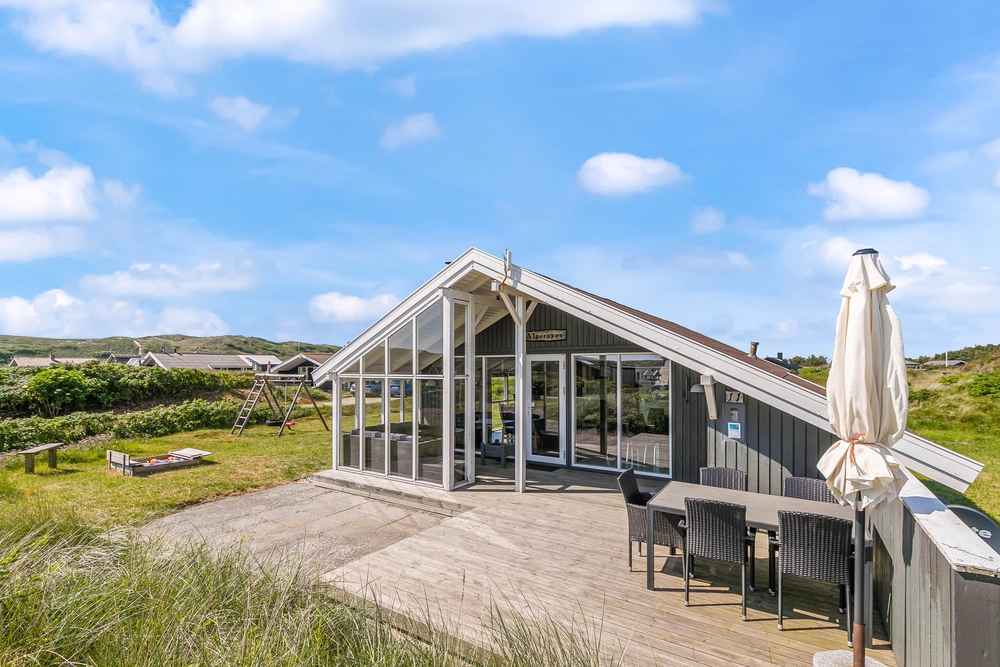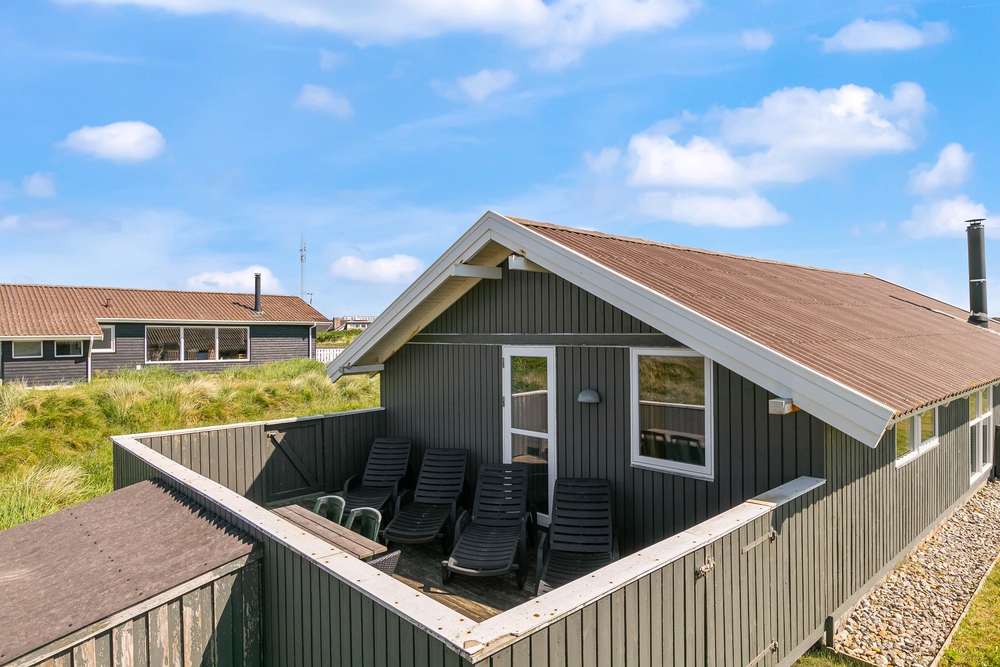 Hier stehen natürlich Gartenmöbel für euch bereit und es ist auch noch ein Grill vorhanden, einem gemütlichen Grillabend mit der Familie steht also nichts mehr im Wege. Da ein Teil der Terrasse abgeschirmt ist, könnt ihr auch bei schlechterem Wetter draußen sitzen und den Ausblick auf die Dünen genießen.
