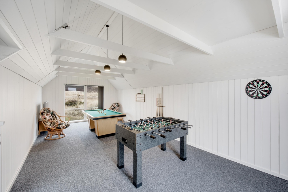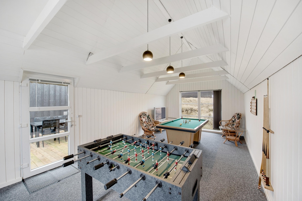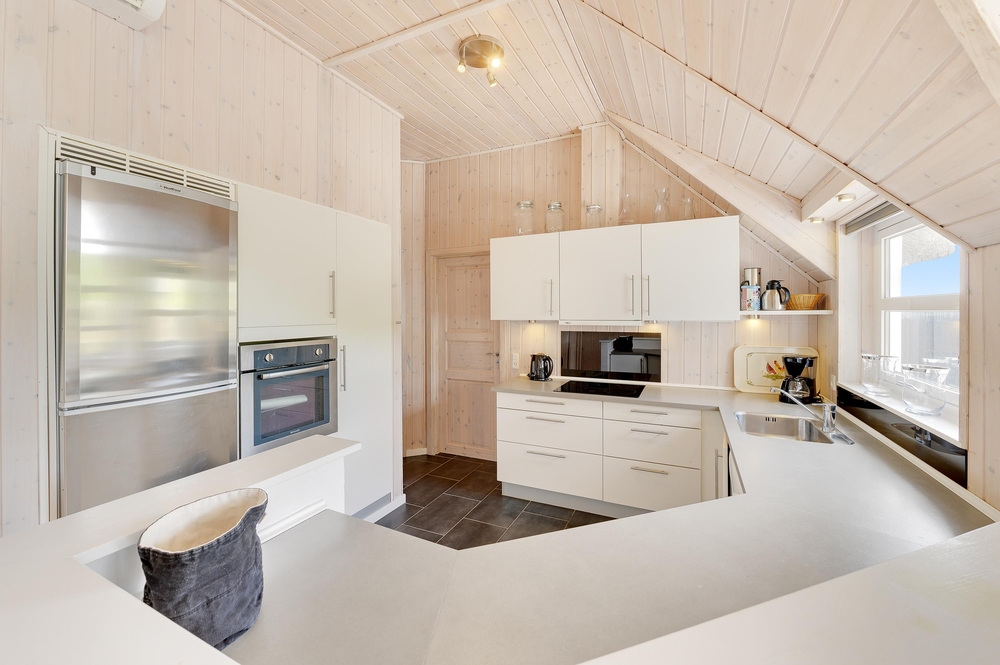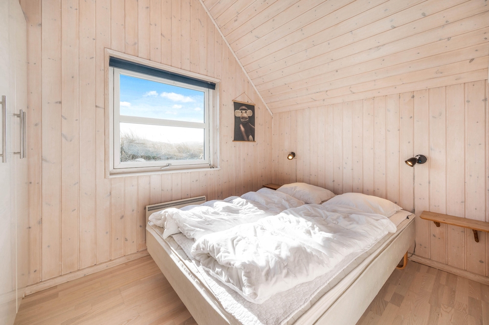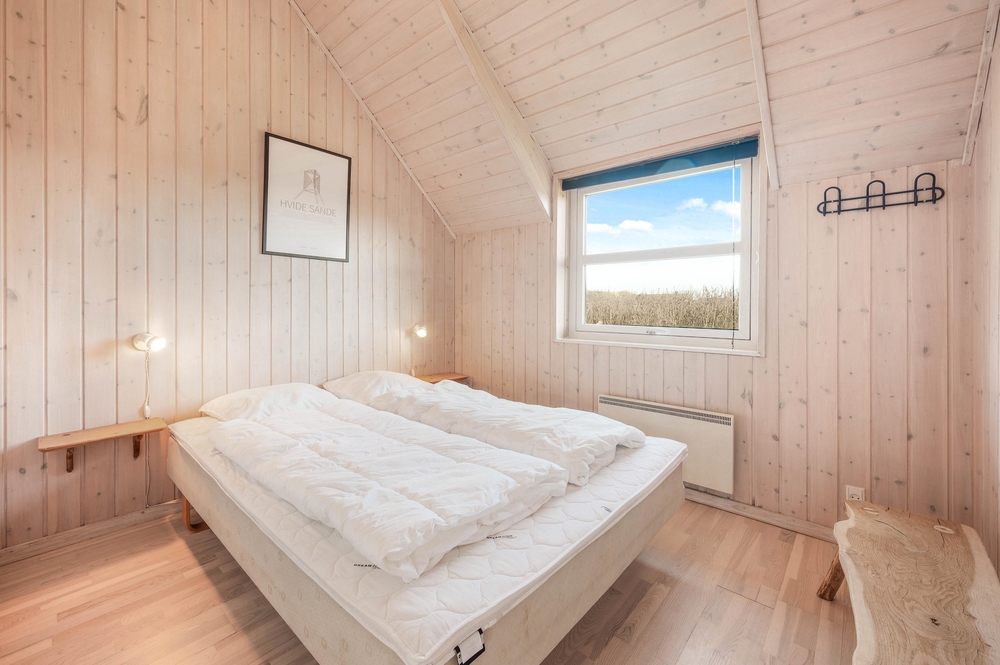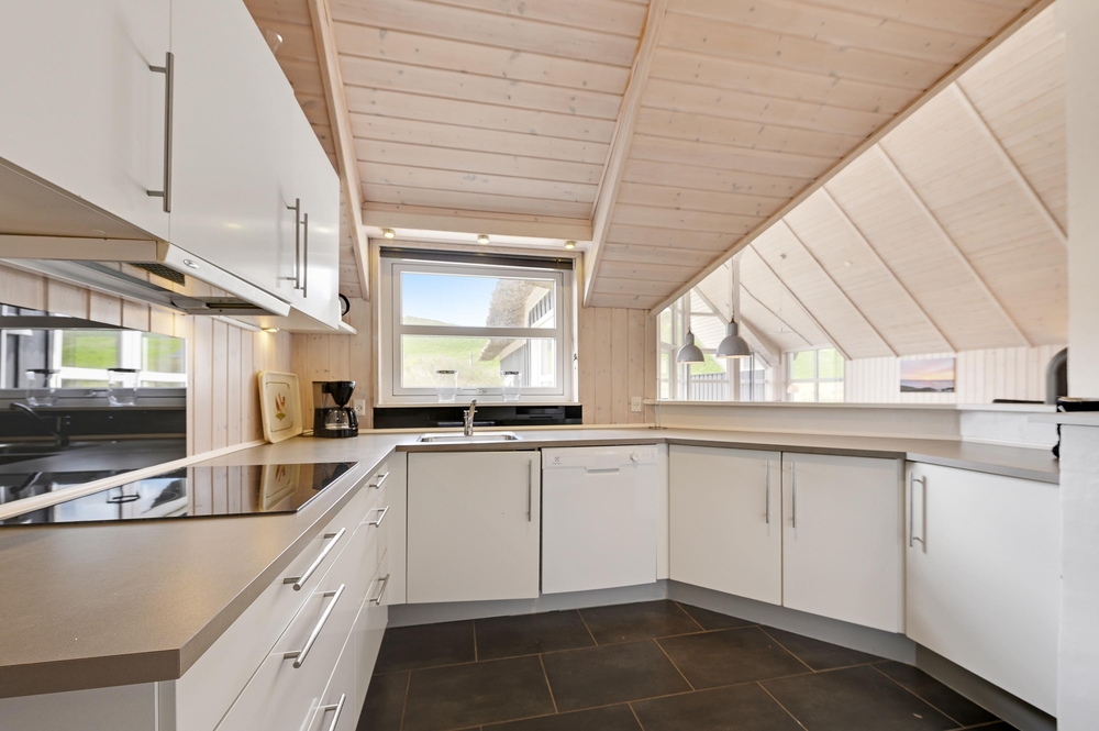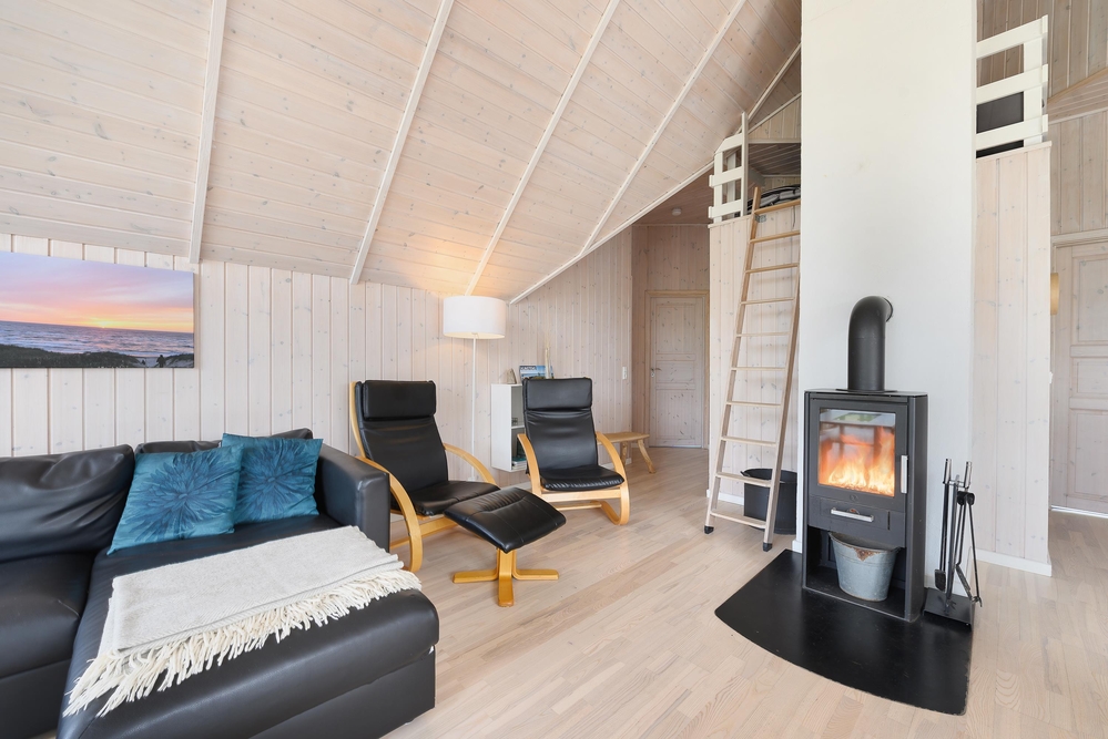 Dieses Ferienhaus ist sehr hell und gemütlich eingerichtet. Durch die große Fensterpartie im Wohnbereich kann man das ganze Jahr über die schöne Aussicht auf die Dünen genießen. Der Wohnbereich ist hell und hat hohe Decken.