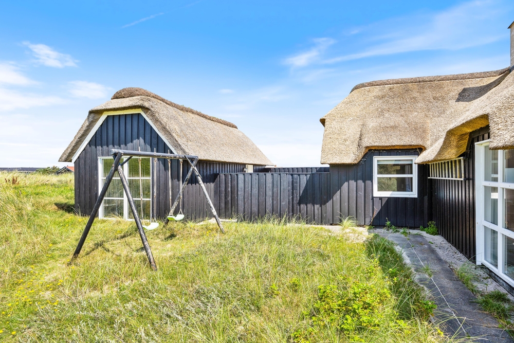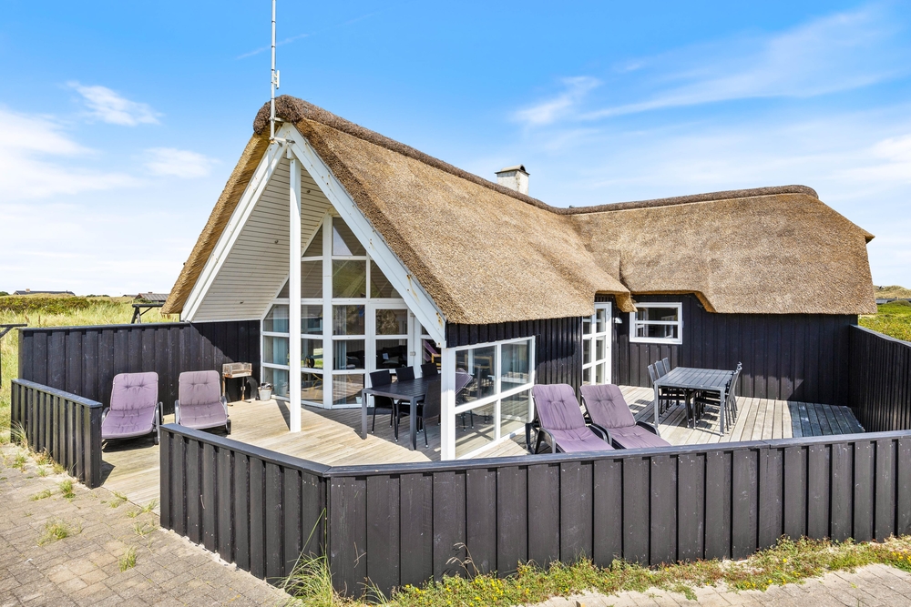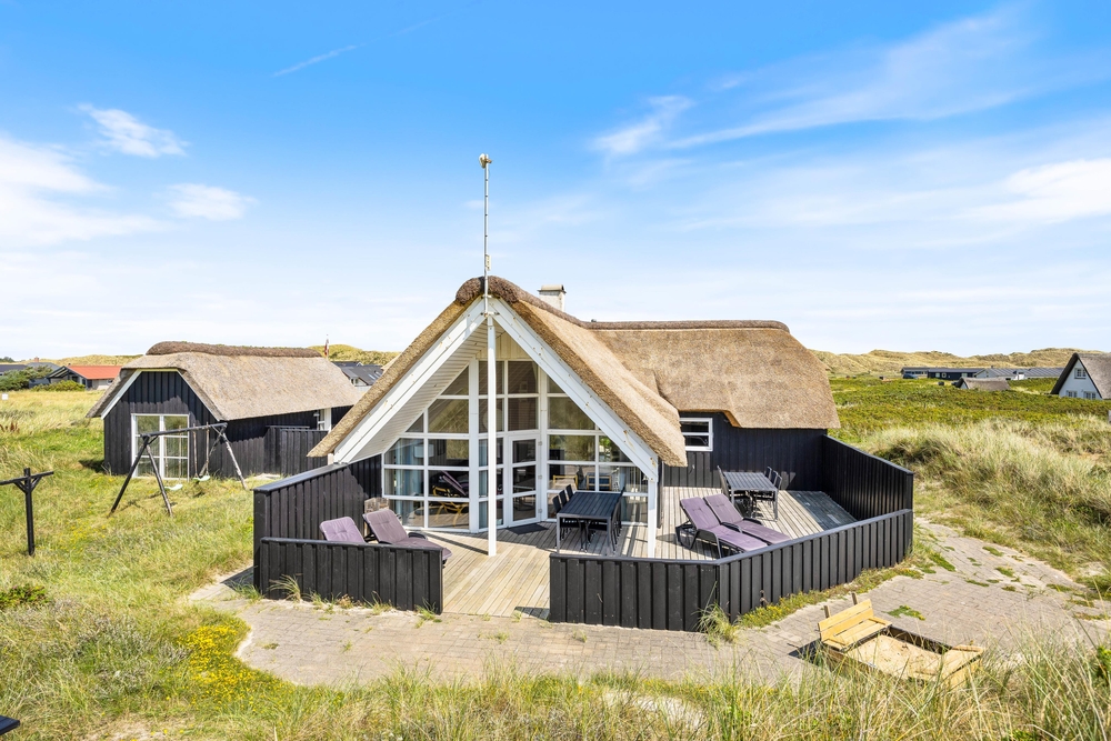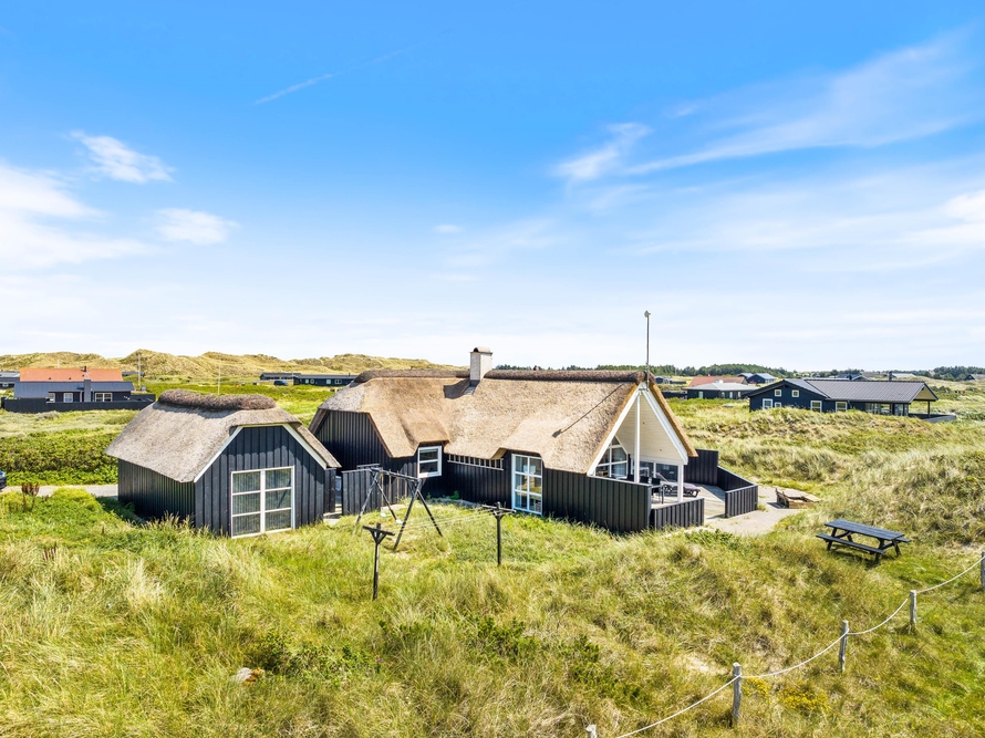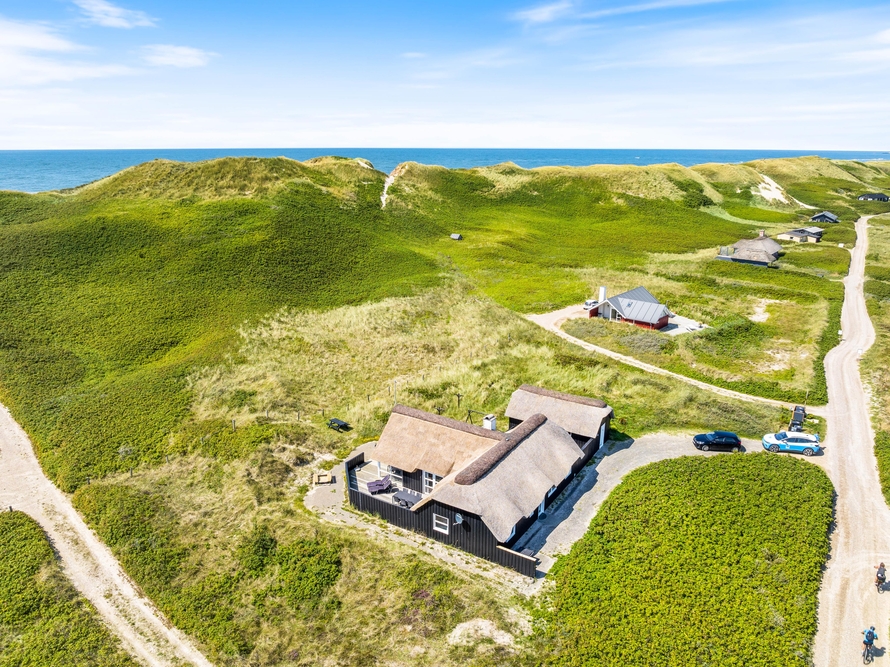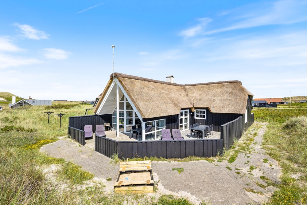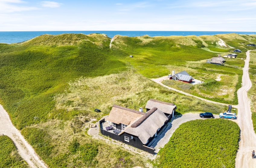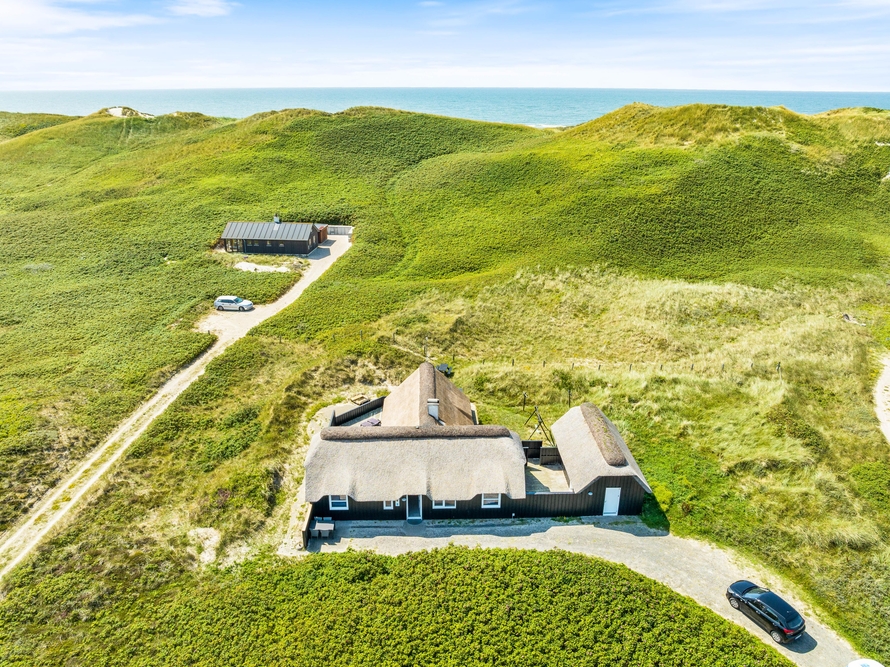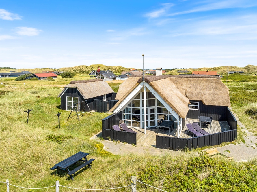 Ein reetgedecktes Ferienhaus, aus den besten Materialien gebaut und ausgestattet, in bevorzugter Lage, auf einem Dünengrundstück an der ersten Reihe, bevor es zum Strand geht. Vom Haus und der Terrasse hat man einen wundervollen Blick auf die Dünen.