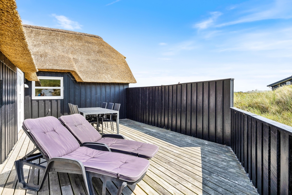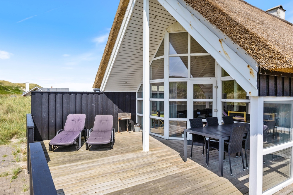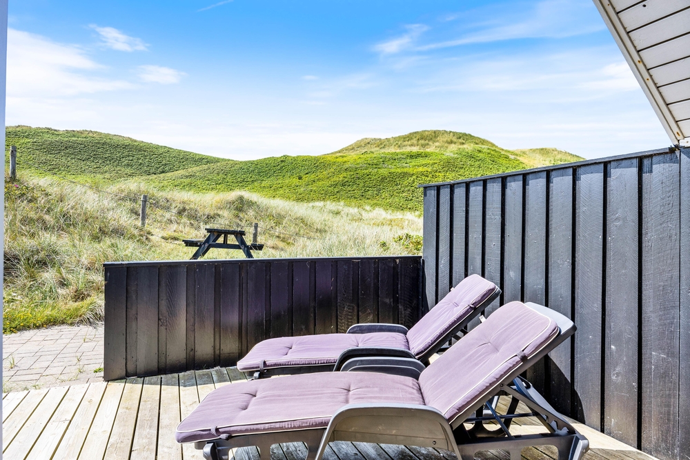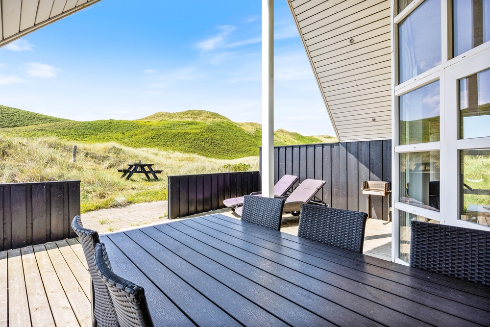 Das Haus besitzt eine große Terrasse, die nach Südwesten verläuft. Hier könnt Ihr die Sonne und die frische Luft genießen oder abends den Grill anmachen. Von der Terrasse hat man einen tollen Blick auf die Dünen.