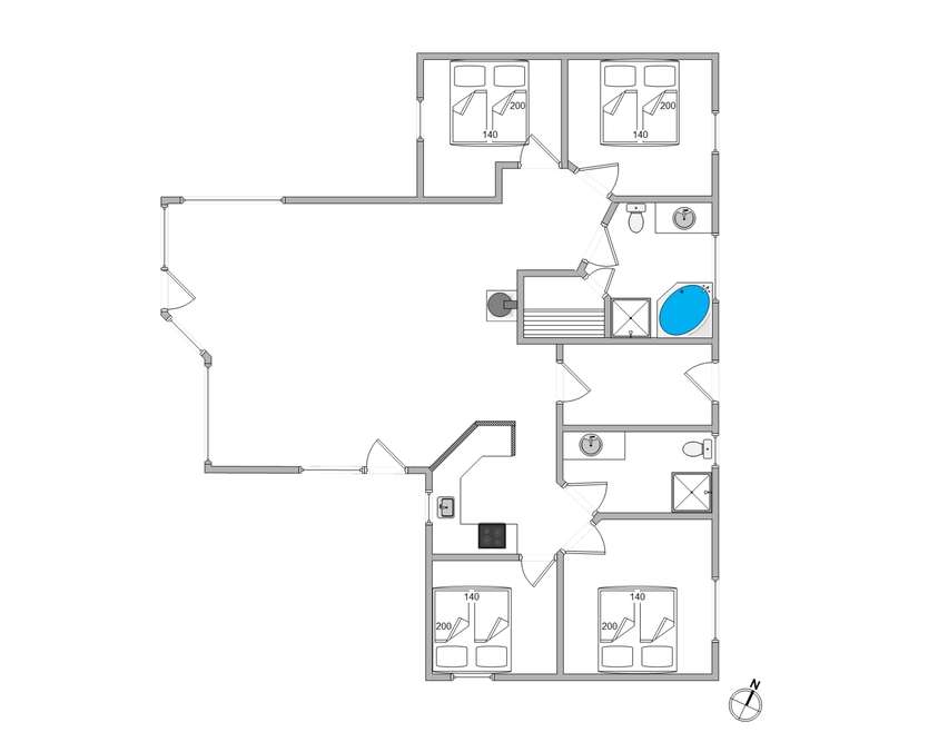 Das Haus verfügt über 4 Schlafzimmer sowie einer Küche, die mit dem Wohnbereich und der Essecke verbunden ist. Die 2 schicken Badezimmer sind geschmackvoll eingerichtet und die Sauna oder der Whirlpool laden zum entspannen ein.