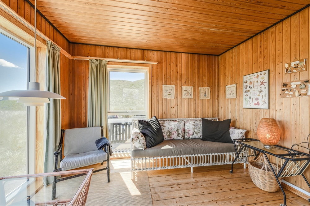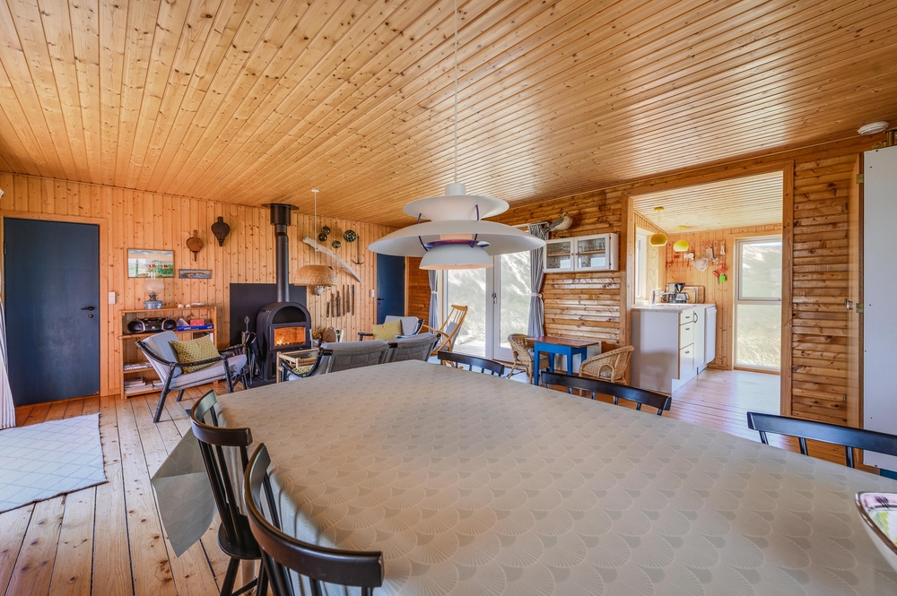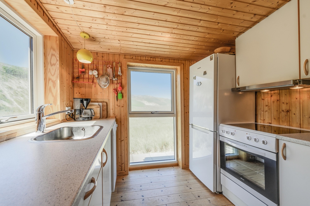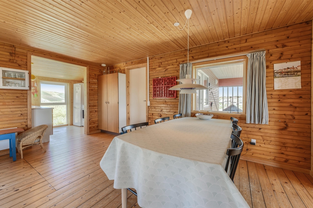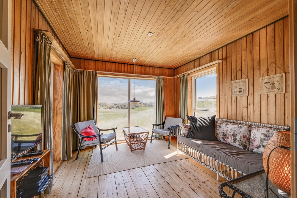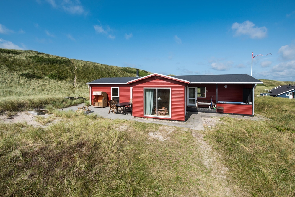 Das Ferienhaus liegt an den Dünen und deswegen hat man im Haus und auf der Terrasse eine wunderschöne Aussicht zu der einzigartigen Dünenlandschaft. Und von hier aus kann man sogar das Rauschen der Nordesee hören.