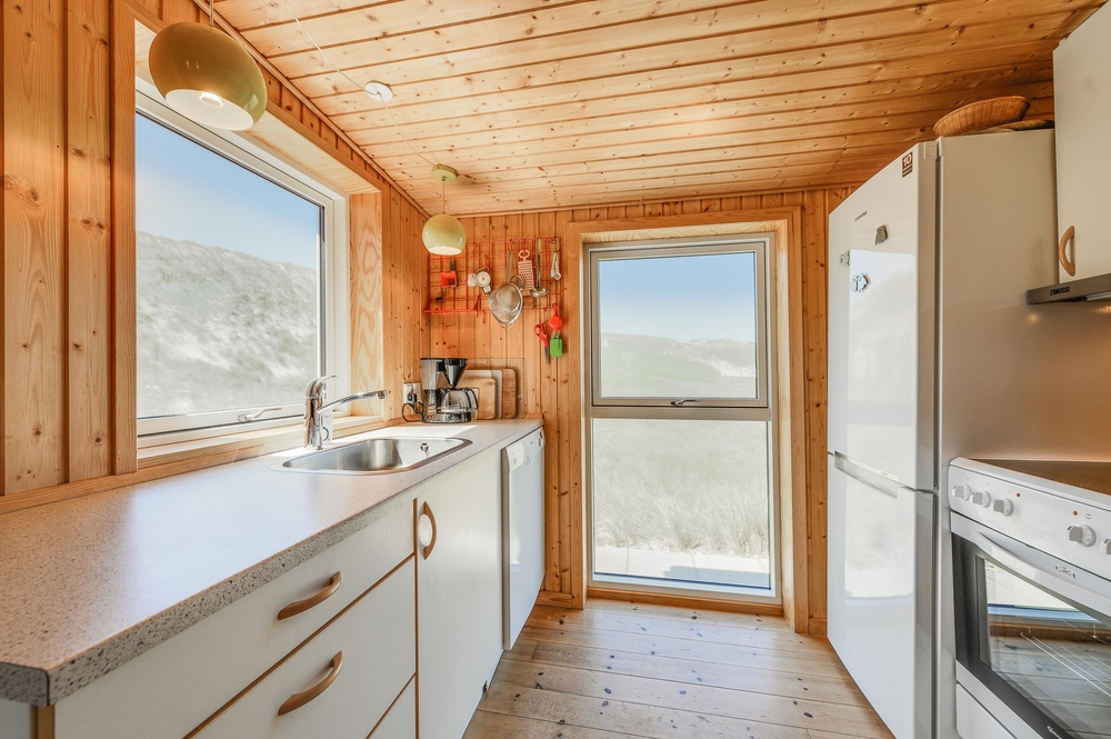 Das Ferienhaus ist in einer sehr schönen Naturumgebung gelegen, welche optimal für lange Spaziergänge besonders am Strand ist. Hier kann man die frische Luft genießen; und wenn das Wetter warm ist, könnt Ihr in die erfrischenden Wellen der Nordsee eintauchen oder am Rand des Ringkøbing Fjordes spielen.