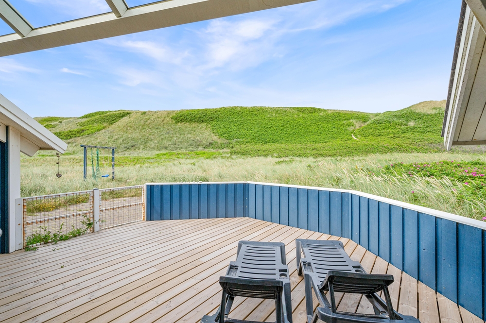 Genieße das Brausen der Nordsee auf der schönen geschlossenen und teilweise überdachten Terrasse, wo die Kids und der Hund sich aufhalten können ohne alleine auf Entdeckungsreise zu gehen. Direkt an den Dünen und nur 100 m. von der Nordsee.