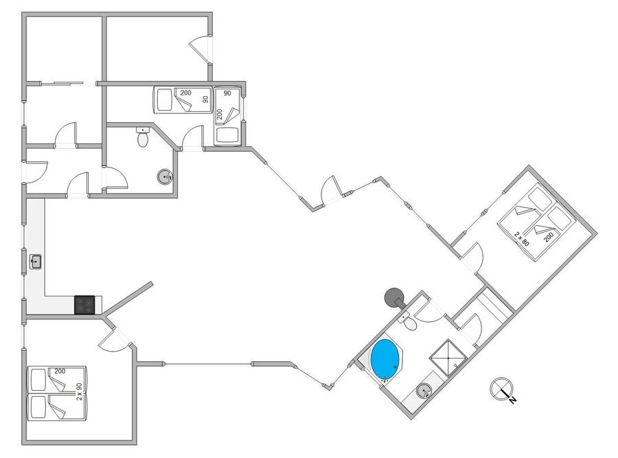 Nach langen Spaziergängen laden der Whirlpool und die Sauna zur totalen Entspannung ein. Das Haus verfügt über sowohl ein schöens Badezimmer mit Whirlpool und Sauna als auch eine Gästetoilette, die praktisch ist, falls mehr Familien bzw. Generationen gemeinsam Urlaub machen.