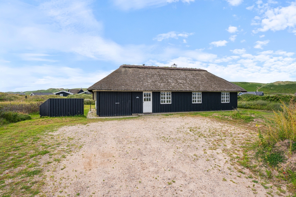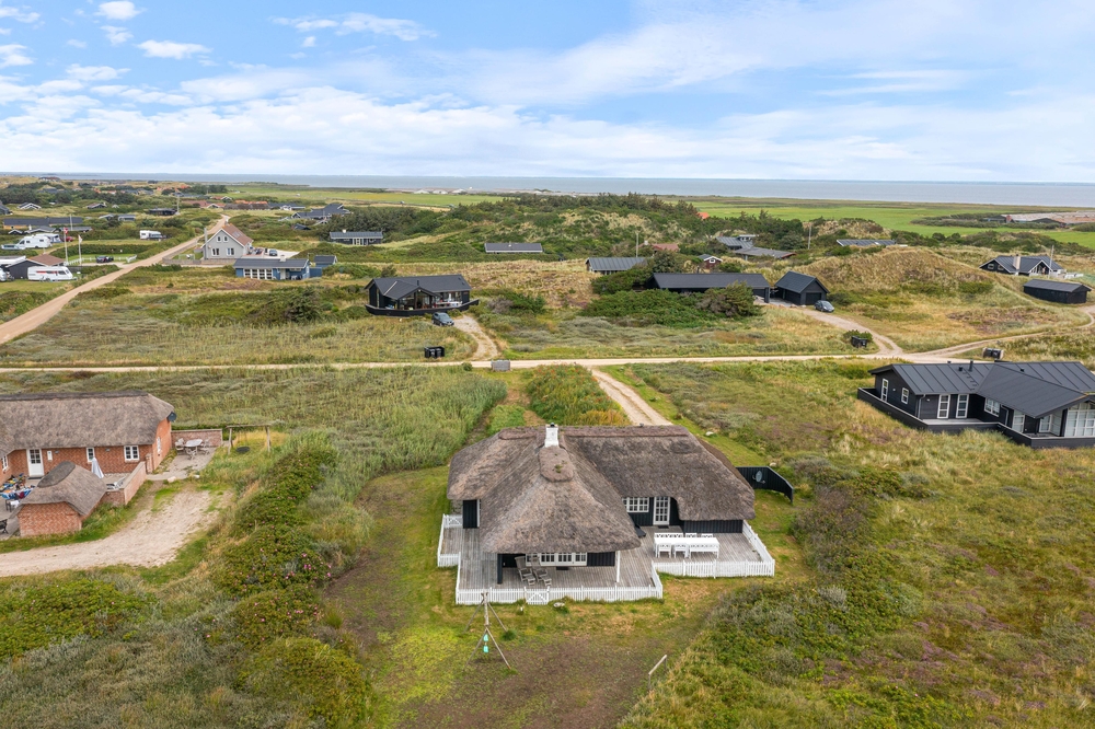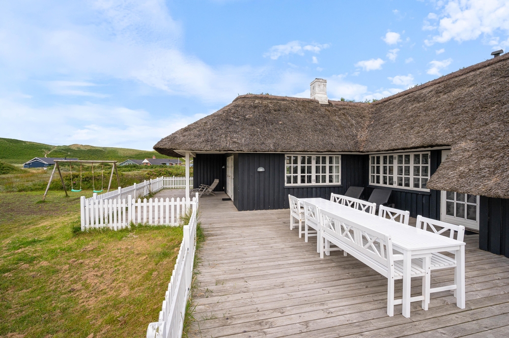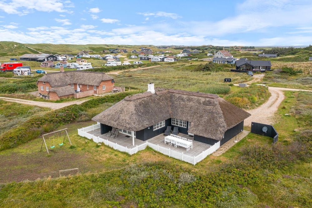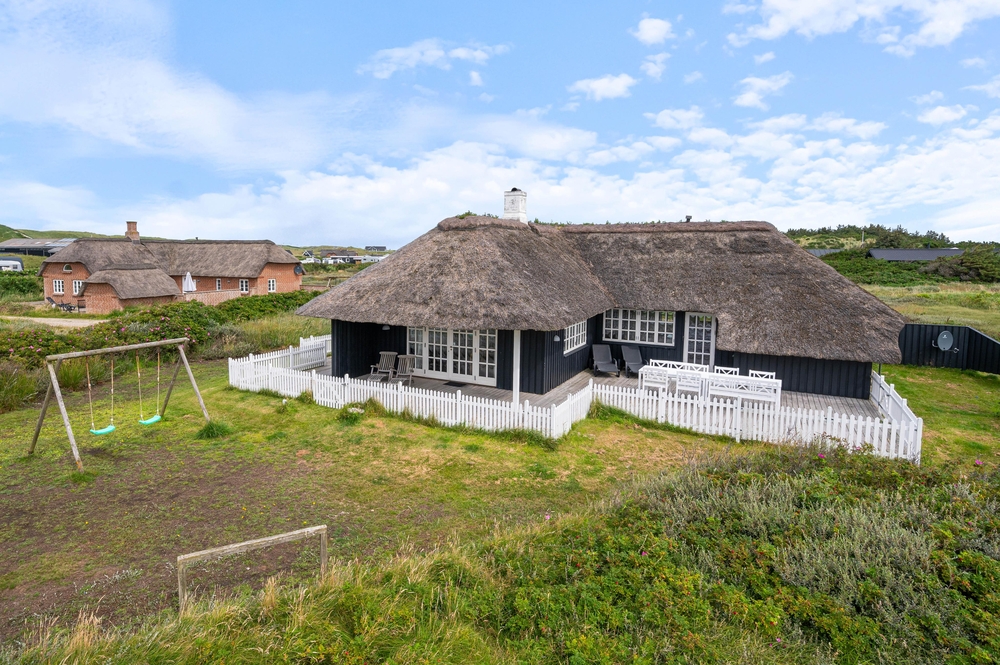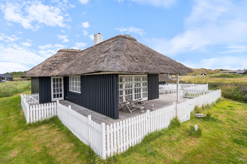 Schönes Ferienhaus mit Reetdach, das auf einem Naturgrundstück liegt und es sind nur 200 Meter bis zum Meer. Hier haben bis zu 6 Personen und 2 Hunde in dem Haus Platz. Von der Westseite des Hauses hast du eine tolle Aussicht auf die Dünen, und die Terrassen können den ganzen Tag genutzt werden. Dieses Ferienhaus ist in 2022 liebevoll renoviert worden.