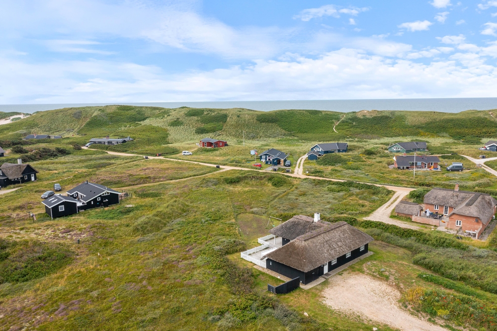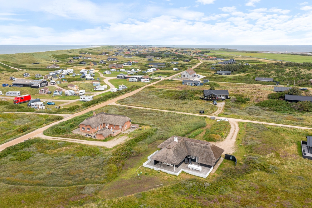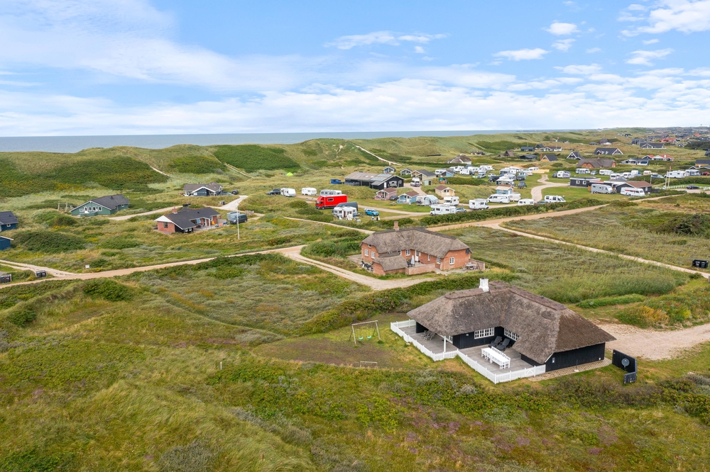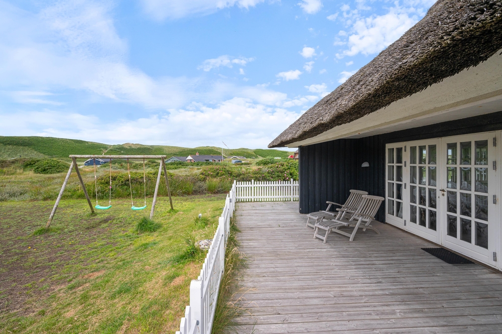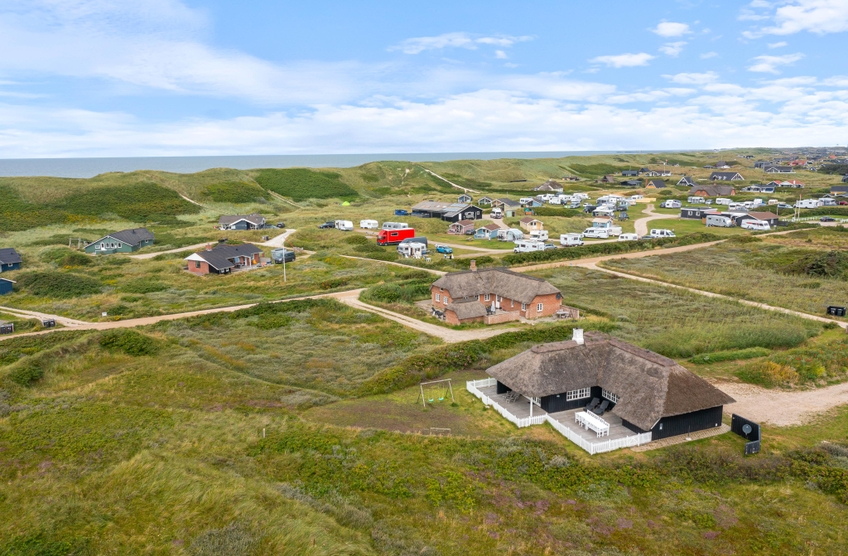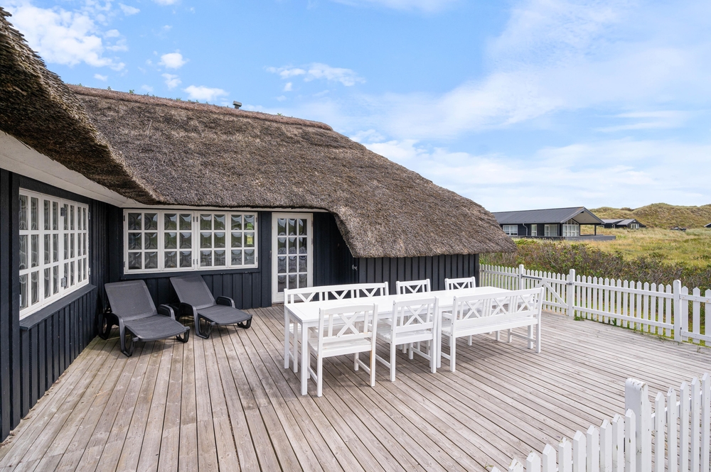 Schönes Ferienhaus mit Reetdach, das auf einem Naturgrundstück liegt und es sind nur 200 Meter bis zum Meer. Hier haben bis zu 6 Personen und 2 Hunde in dem Haus Platz. Von der Westseite des Hauses hast du eine tolle Aussicht auf die Dünen, und die Terrassen können den ganzen Tag genutzt werden. Dieses Ferienhaus ist in 2022 liebevoll renoviert worden.