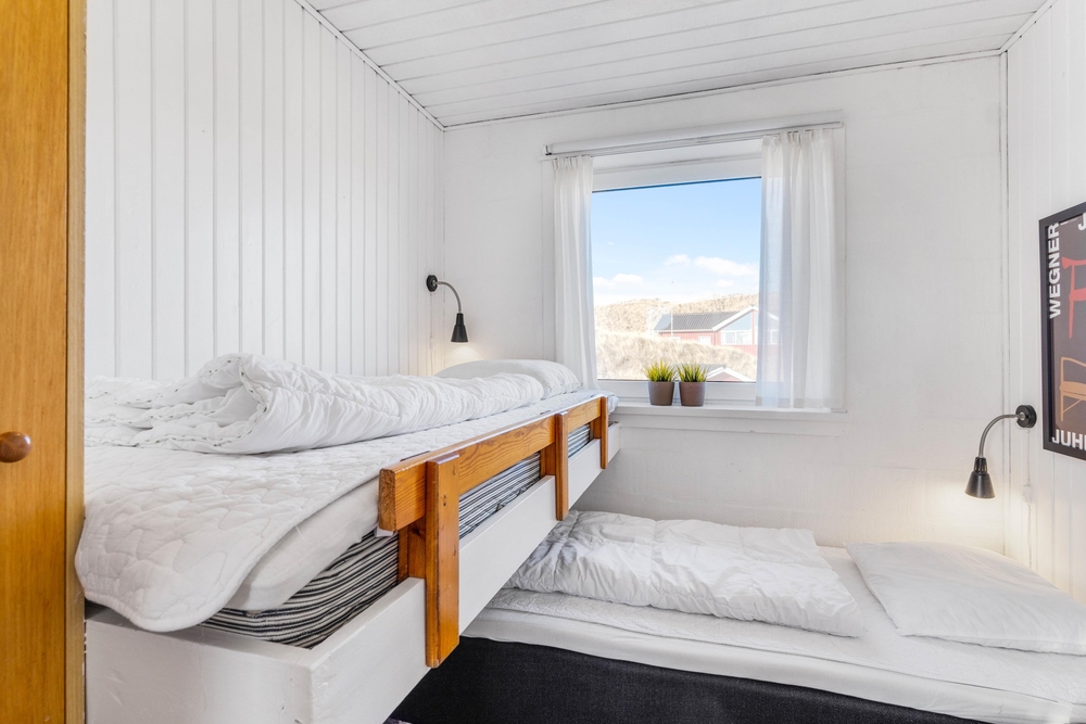 Im Tingodden 243 steht dieses kleine, aber feine Ferienhaus nur 50 Meter vom kilometerlangen, weißen Sandstrand entfernt. Es bietet einer kleinen Familie mit bis zu 5 Personen oder Paaren mit Hund ein gemütliches Zuhause für ene entspannte Urlaubszeit.