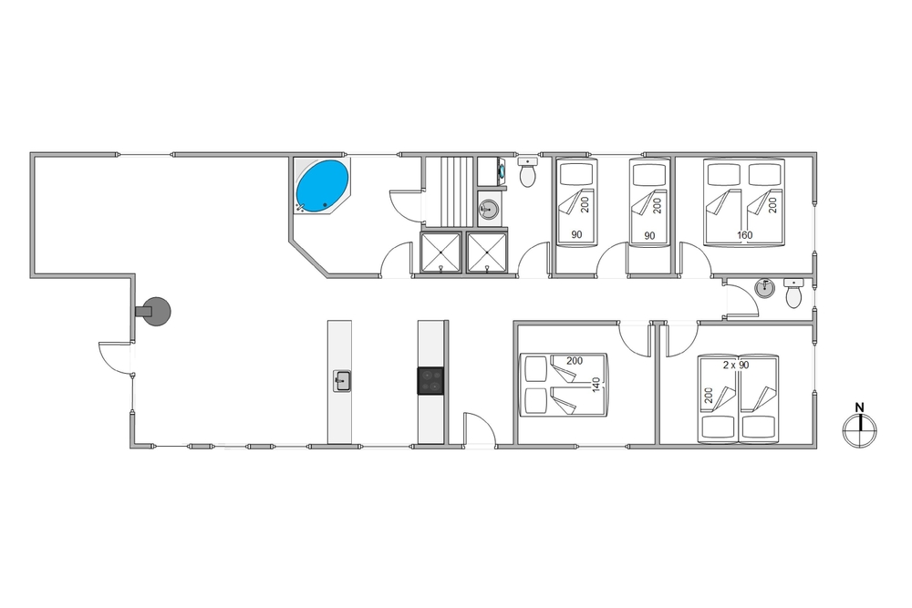 In diesem Ferienhaus wird der Komfort und Qualität groß geschrieben. Die gesamte Einrichtung ist hell und freundlich und du fühlst dich hier schnell wie zu Hause. Die Küche ist mit dem Wohnzimmer verbunden und bildet somit einen schönen großen Raum, wo die ganze Familie Platz hat.