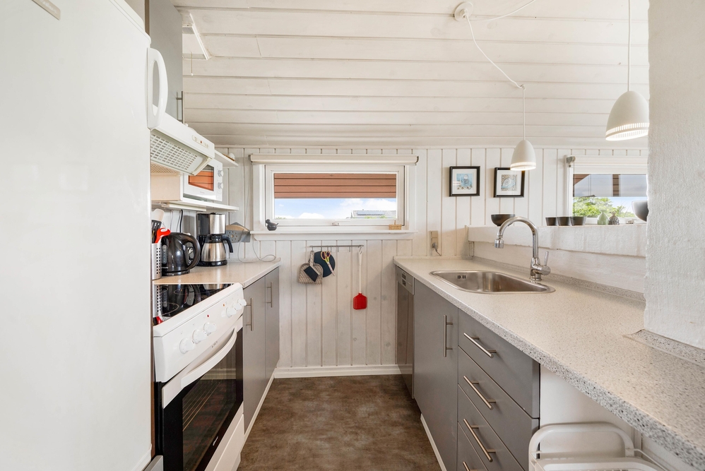 Hell und freundlich eingerichtet bietet das Haus Platz für 5 Personen in 3 Schlafzimmern. Das sehr schöne Badezimmer hat Fußbodenheizung, die funktionelle Küche ist offen mit dem gemütlichen Wohnzimmer verbunden, welches schick in hellen und einladenden Farben eingerichtet ist.