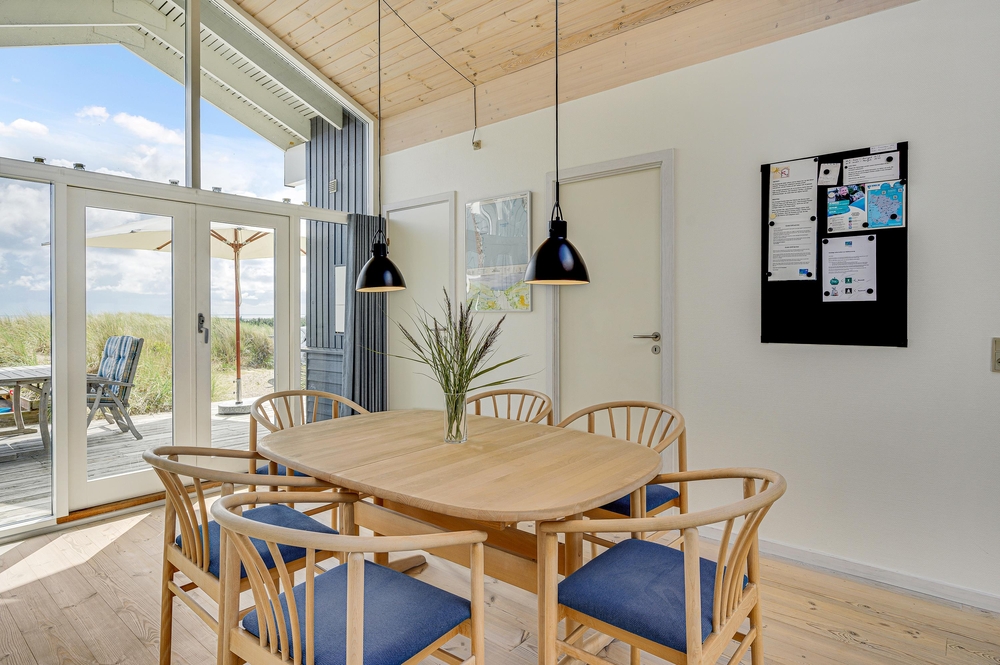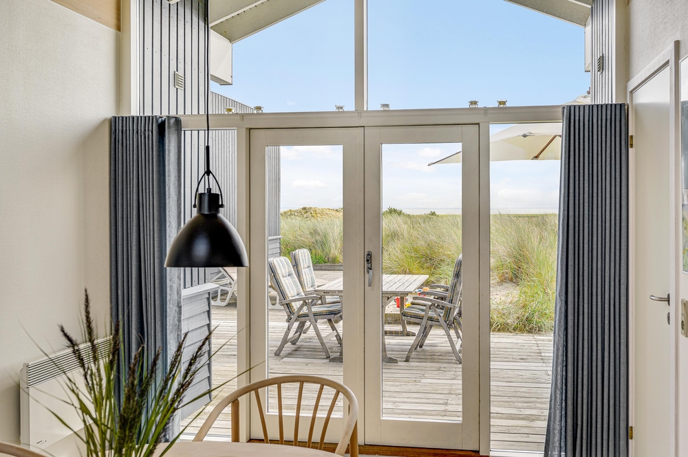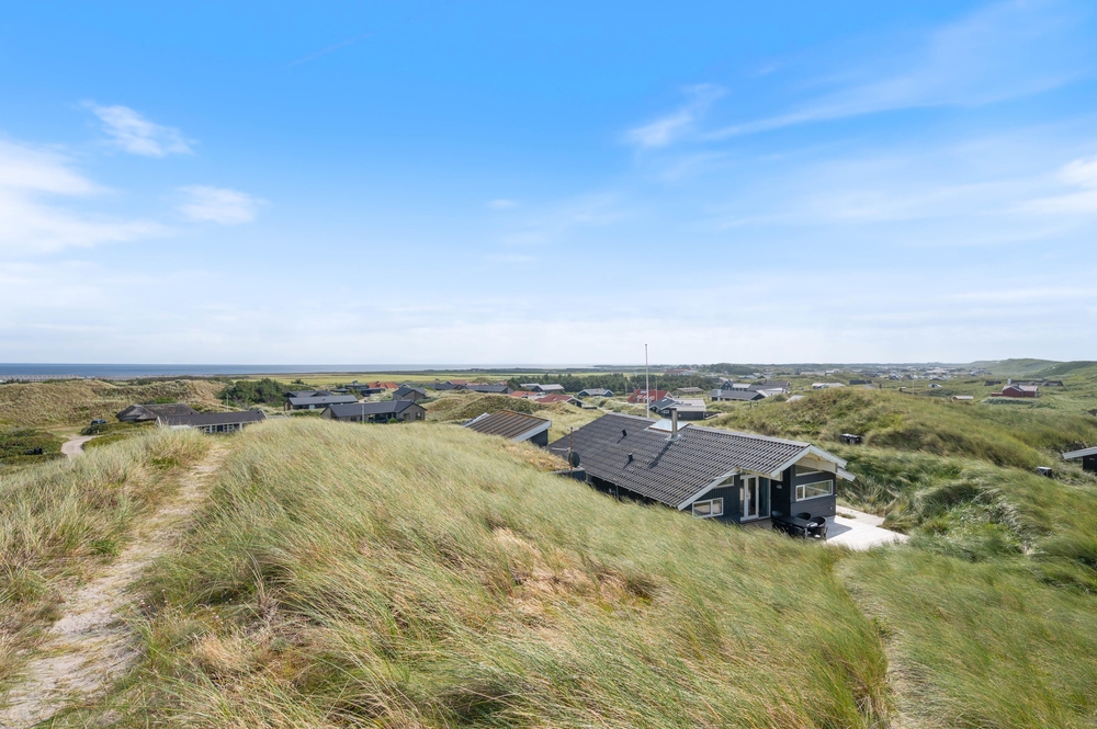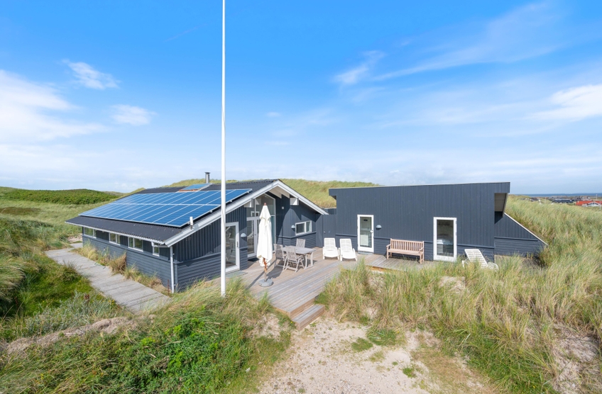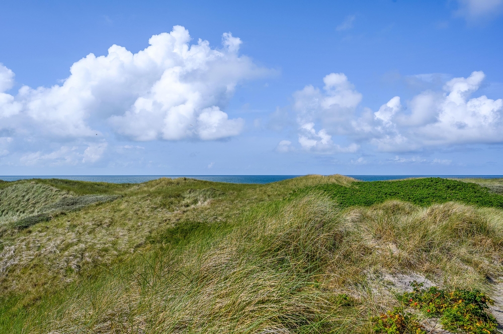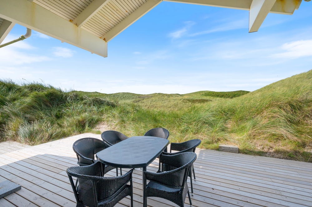 Das Ferienhaus ist hoch gelegen auf einer Düne mit hervorragender Aussicht, aber ist gleichzeitig völlig ungestört. Die Ostterrasse ist meistens sehr windgeschützt und Ihr habt hier einen prachtvollen Blick auf den Ringkøbing Fjord. Auf der teilweise überdachten und natürlich abgeschirmten Westterrasse sitzt Ihr direkt an der Düne und mitten in der hübschen Landschaft.