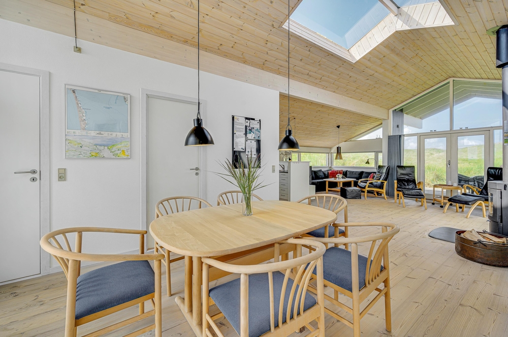 Das hübsche und geräumige Ferienhaus ist hell und einladend eingerichtet und es gibt einen tollen Lichteinfall durch die großen Glasflächen Richtung Osten und Westen sowie auch durch die Oberlichtfenster im Wohnzimmer.
