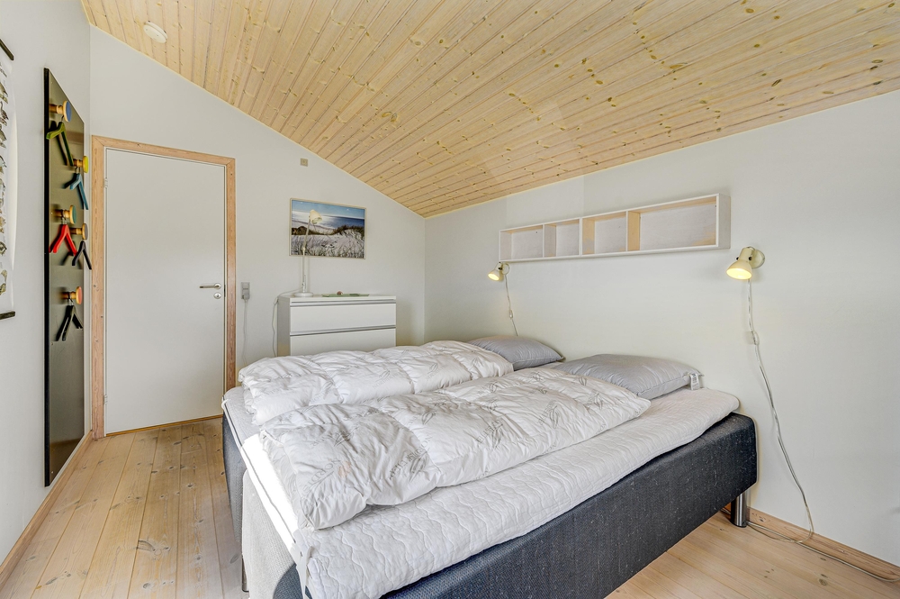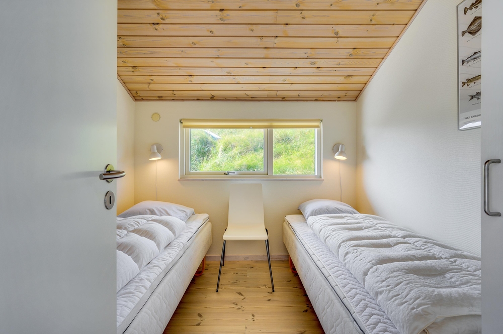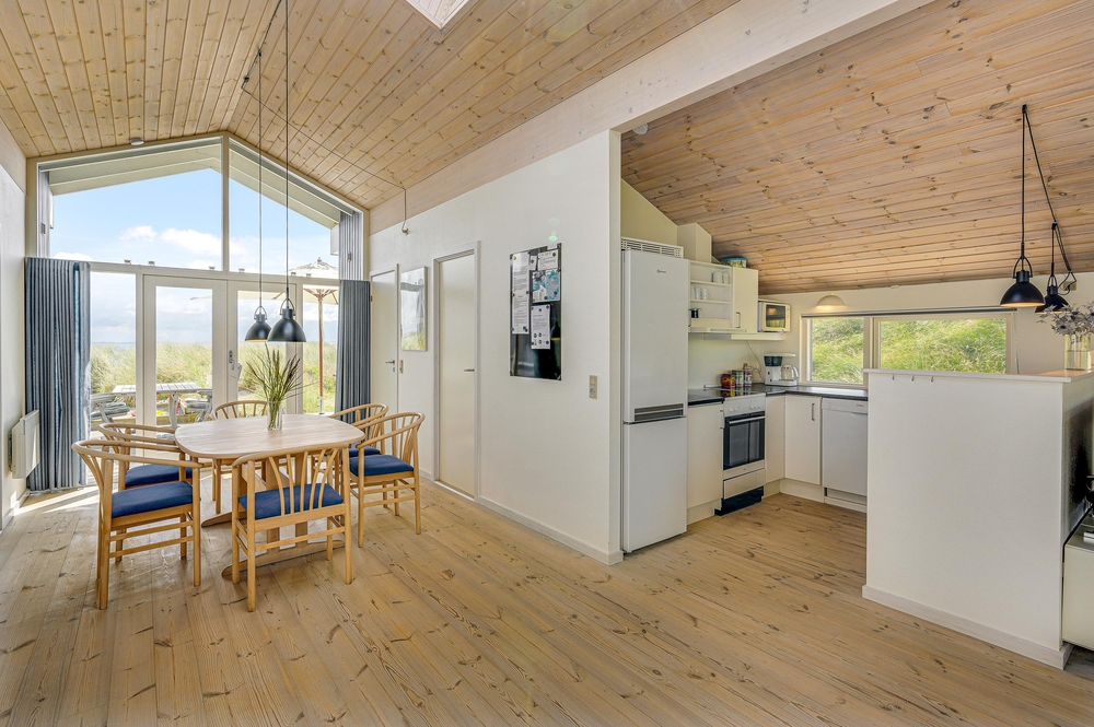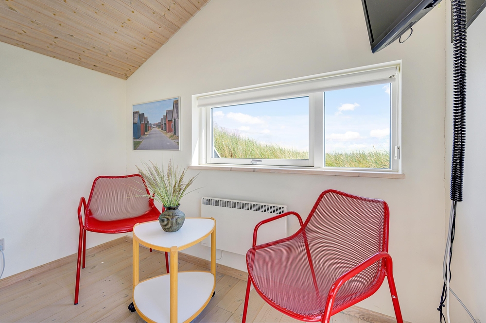 Erstklassiges Ferienhaus in einzigartiger und ungestörter Lage auf einem Dünengrundstück in Årgab. Vom Haus und der Terrasse gibt es eine wunderschöne Aussicht auf den Fjord und die großartige Dünenlandschaft. Zum Haus gehört ein neuer Anbau mit Doppelzimmer und Badezimmer mit Fußbodenheizung.