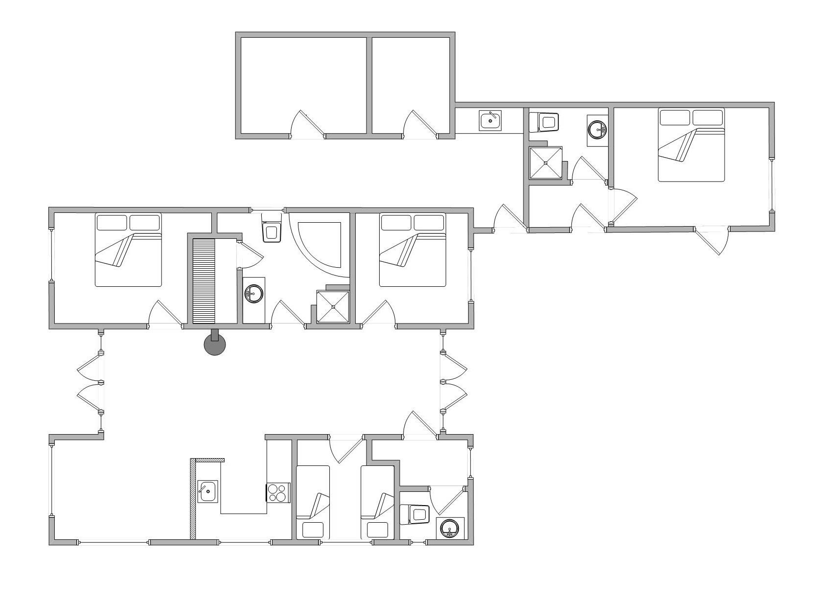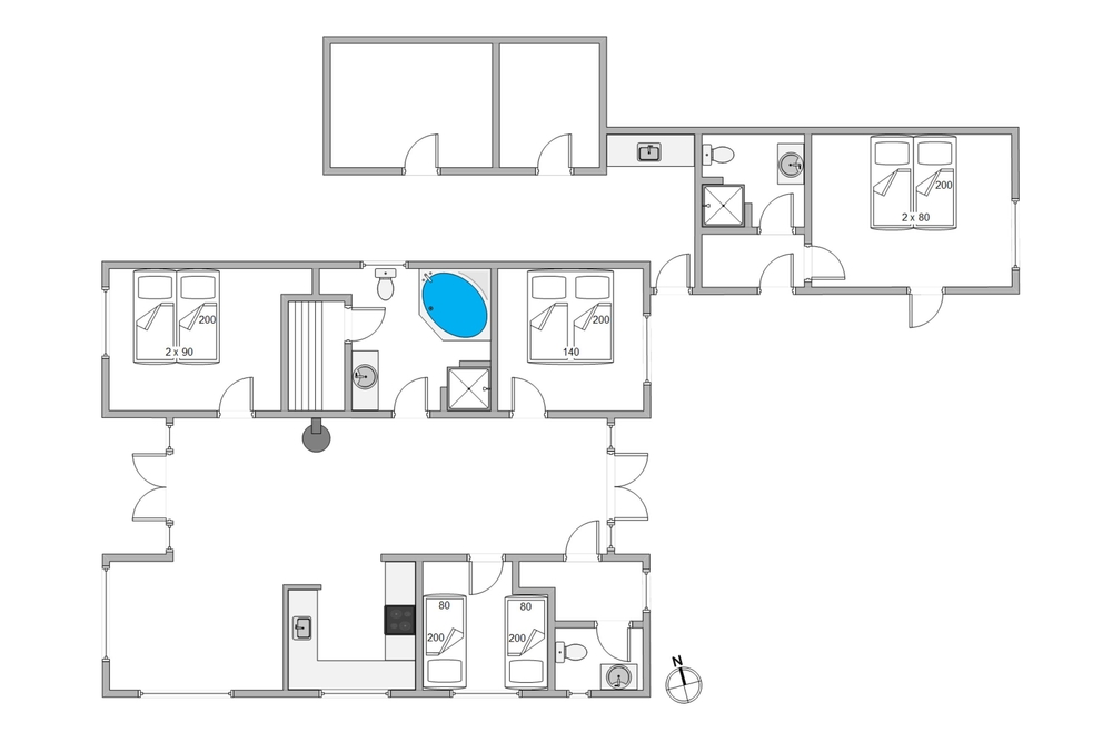 Im Haupthaus gibt es 3 schöne Schlafzimmer, ein großes Badezimmer mit Whirlpool und Sauna, sowie auch eine kleine Gästetoilette. Im hübschen Anbau gibt es noch einen Doppelzimmer und ein Badezimmer mit Fußbodenheizung. Somit bietet das Haus Platz für insgesamt 8 Personen.