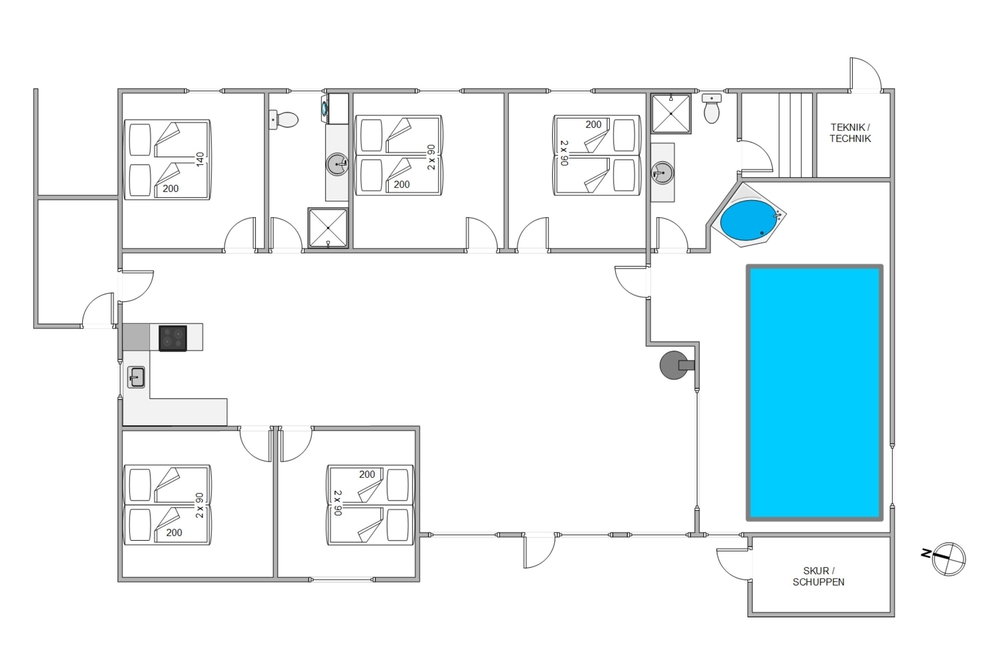 Das besondere Highlight dieses hyggeligen Sommerhauses ist natürlich der 19 qm große Pool mit angrenzendem Whirlpool. Genießt entspannte Stunden im Wasser oder in der Sauna.