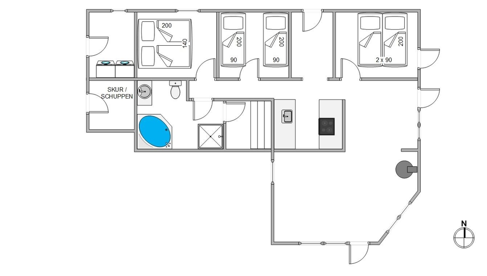 Das gemütliche Holzhaus besticht durch seinen klassischen Look und seine strandnahe Lage. Herzstück ist der offene Wohn- und Kochbereich mit seinen grossen Fenstern. Dieser lädt zu gemeinsamen Aktivitäten und Kochen ein. Macht es euch im Wohnzimmer gemütlich, hier wartet eine Vielzahl deutscher Fernsehprogramme auf euch. Die hochwertig ausgestattete Küche lädt zum gemeinsamen Kochen ein. Desweiteren stehen euch Waschmaschine und ein Wäschetrockner zur Verfügung.