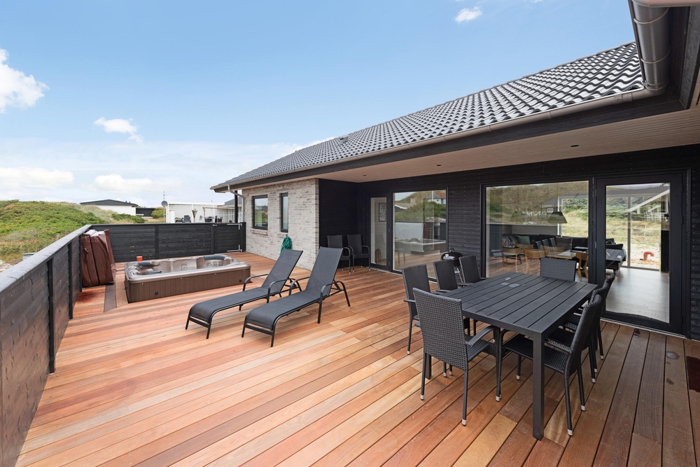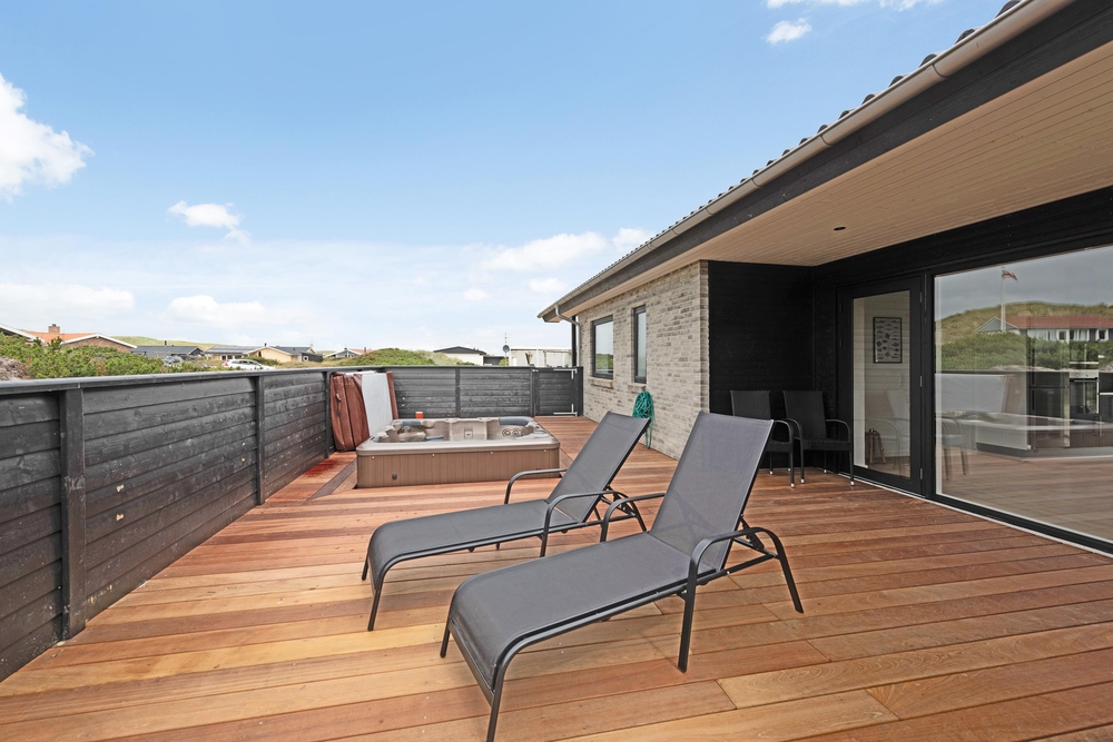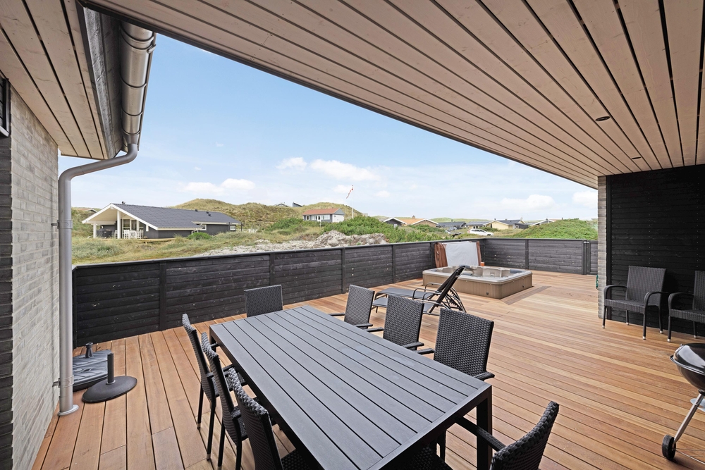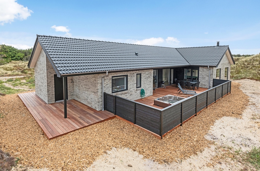 Inmitten der Dünenlandschaft Westjütlands, nur 250 Meter vom weißen Sandstrand entfernt, erwartet euch dieses neu erbaute Luxushaus. Hier garantieren wir euch Unterhaltung in allen Bereichen; mit Sauna, Außenwhirlpool und eigenem Aktivitätsraum!
