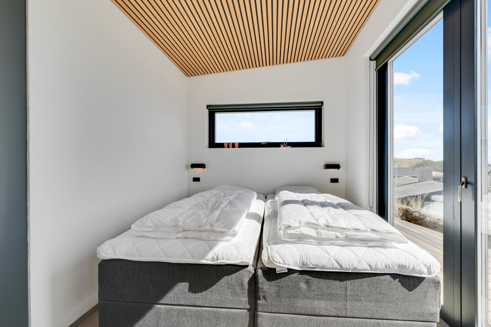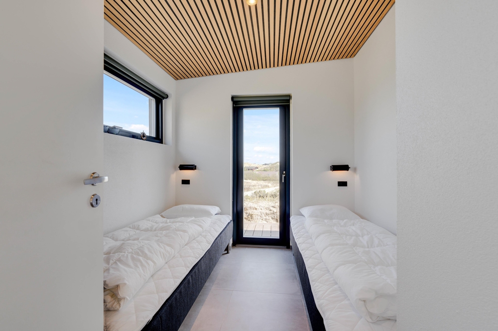 Auch in den 2 Zimmern findet ihr die modernen Holzdecken und Fliesen wieder. Von beiden Zimmern habt ihr direkten Zugang zur Terrasse, sobald ihr die Augen öffnet könnt ihr die Aussicht auf die Dünen genießen und dem Rauschen des Meeres lauschen.