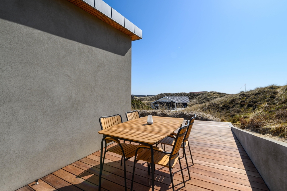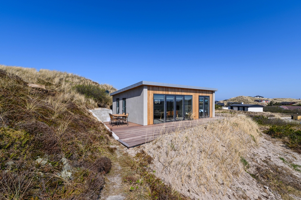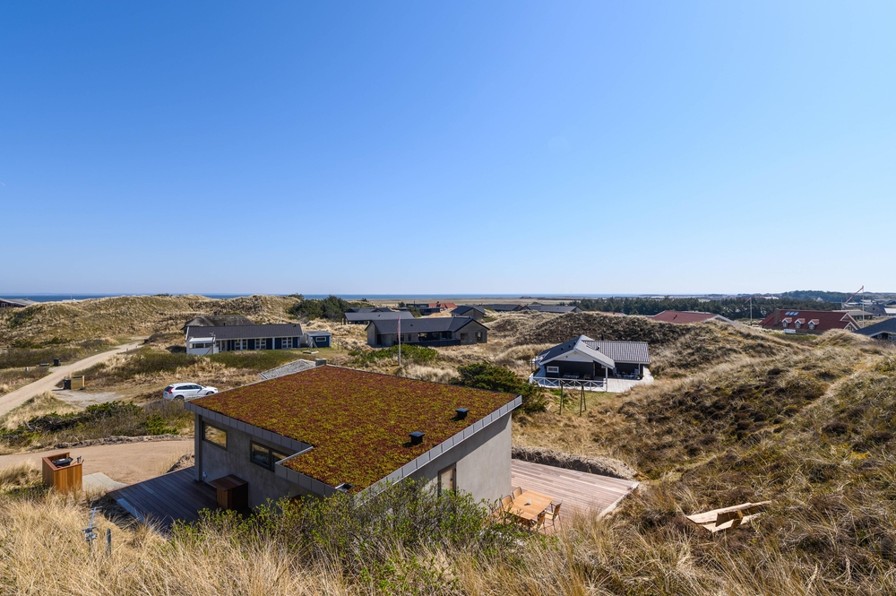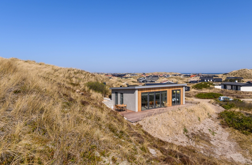 Das moderne Ferienhaus ist auf einem hochgelegenem Naturgrundstück gebaut, wo ihr über die südostgewendete Terrasse einen fantastischen Ausblick über die Dünenlandschaft zum Ringköbing Fjord habt. Von hier könnt ihr die schönen Sonnenaufgänge zum morgendlichen Kaffee betrachten und euch den Tag über entspannen ? wenn eure Tour nicht zum Strand der dänischen Westküste geht, der nur einen Steinwurf entfernt ist.